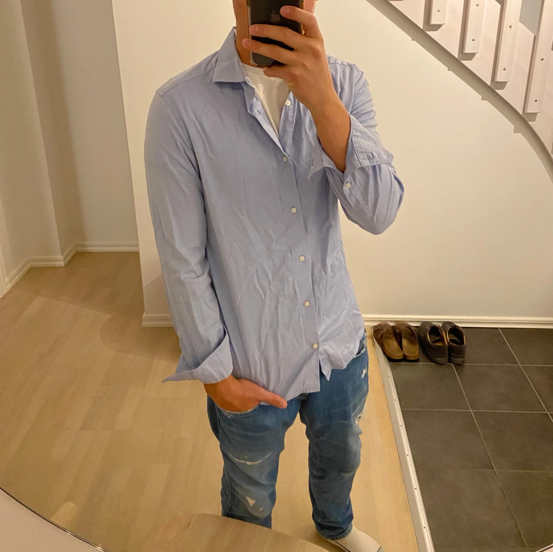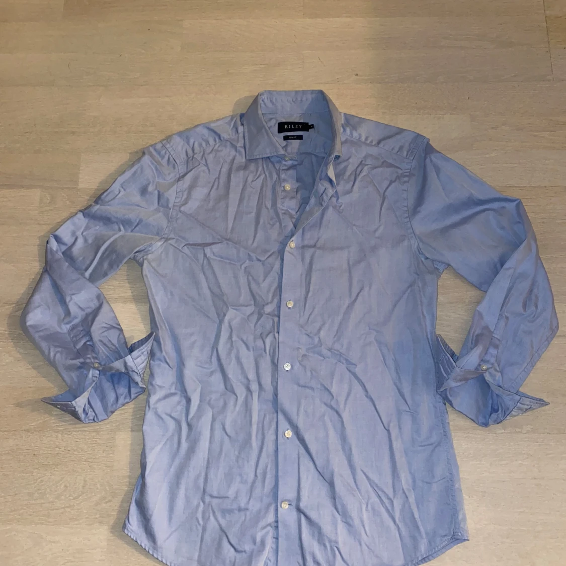 Säljer en stilren ljusblå skjorta från Riley i slim fit-modell. Skjortan har klassisk krage, vita knappar och långa ärmar. Perfekt för dig som gillar en clean och enkel look. Materialet är mjukt och känns skönt mot huden.