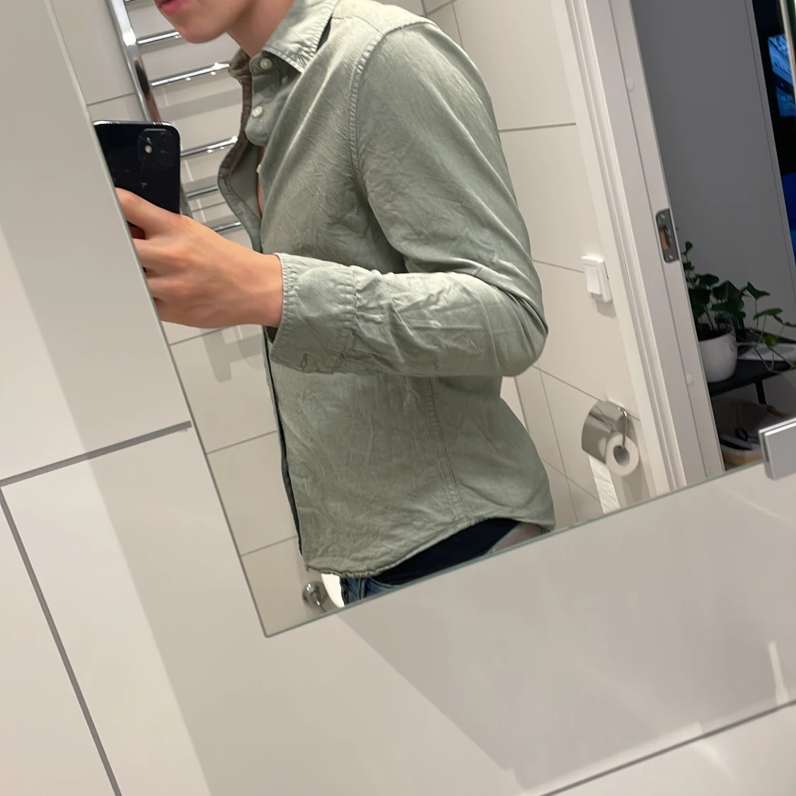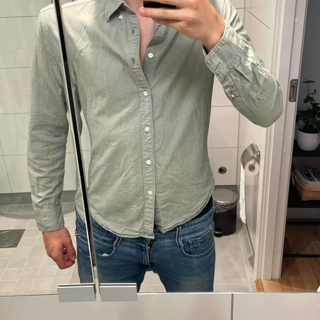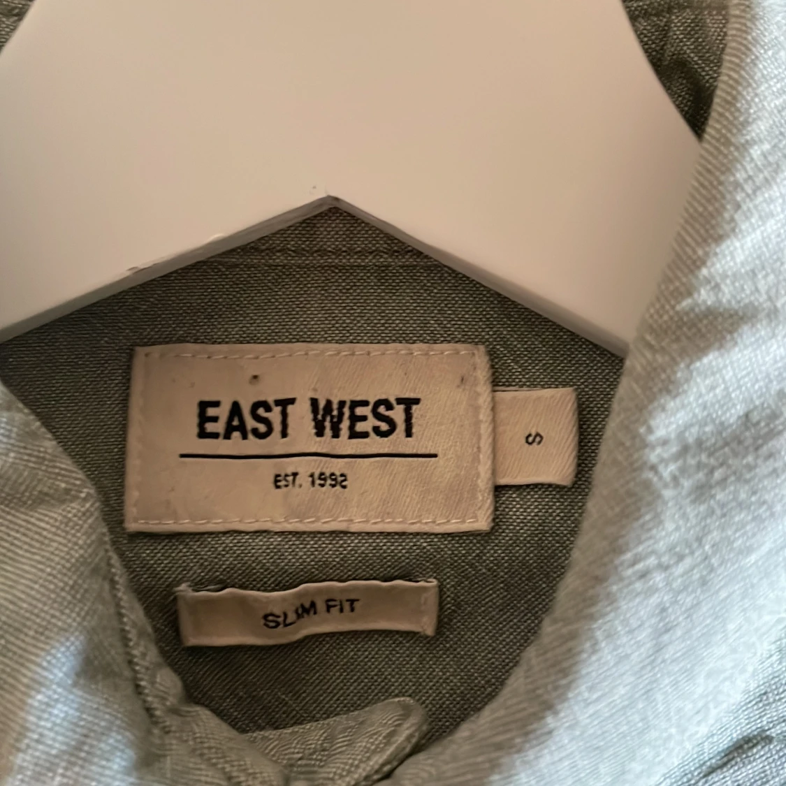 Säljer en stilren ljusgrön skjorta från East West i slim fit-modell. Skjortan har klassisk krage, långa ärmar och knäppning framtill med vita knappar. Perfekt för dig som gillar en enkel och fräsch look.