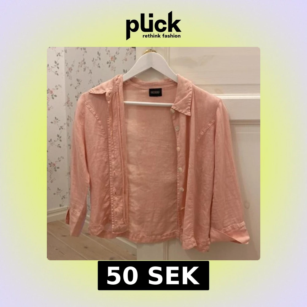 Säljer en ljusrosa skjorta från Hobb i svalt linne. Skjortan har klassisk krage, knappar framtill och trekvartsärmar. Perfekt för dig som gillar en avslappnad men ändå stilren look.