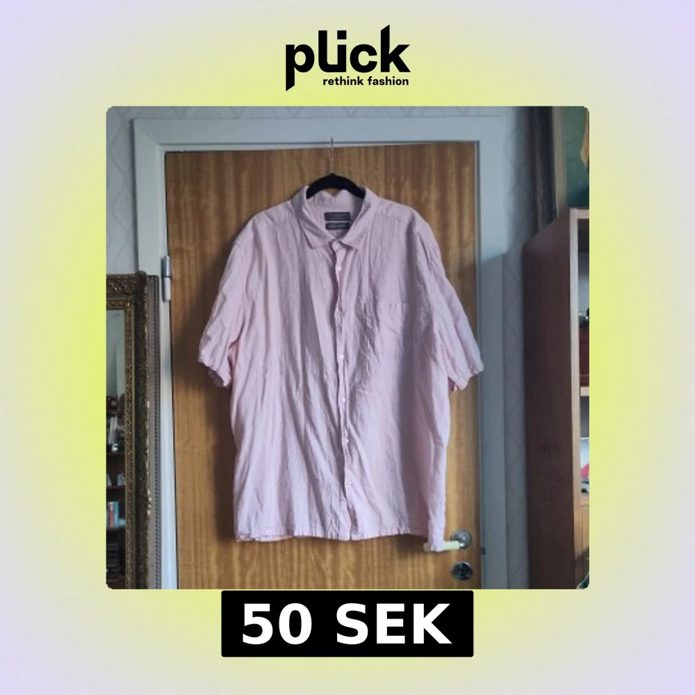Säljer en ostruken ljusrosa skjorta från Primark i linneblandning. Skjortan har korta ärmar och en klassisk krage med knappar framtill. Perfekt för en avslappnad stil. Går något nedanför rumpan på mig som är 161cm lång.