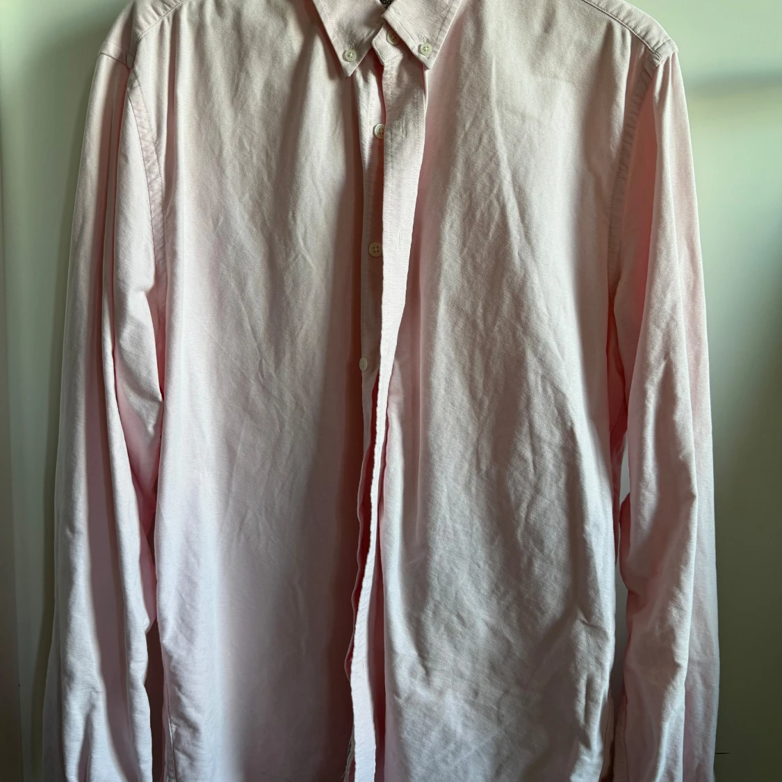 Säljer en stilren ljusrosa skjorta från Made in the Shade i storlek L. Tjockare bomullstyg. Endast använd en gång.