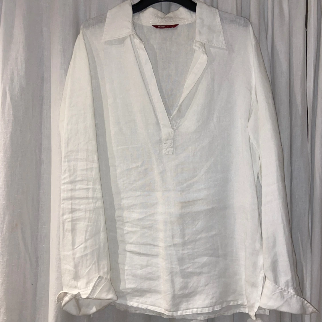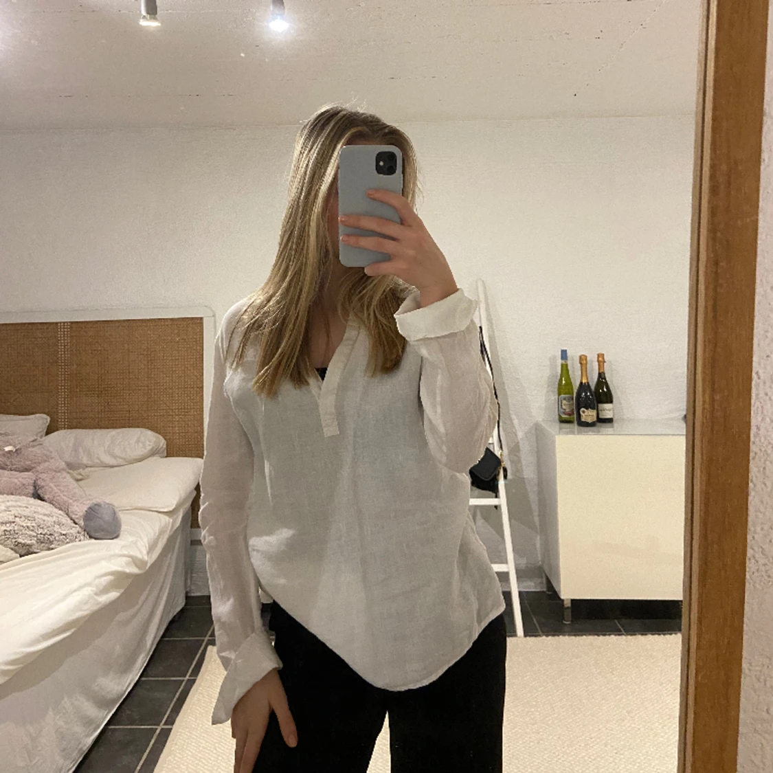 Vit linneskjorta! Säljer pga av att jag inte använder plagget längre. Storlek: XS. Skick: Bra, inte nopprig och knappt använd.