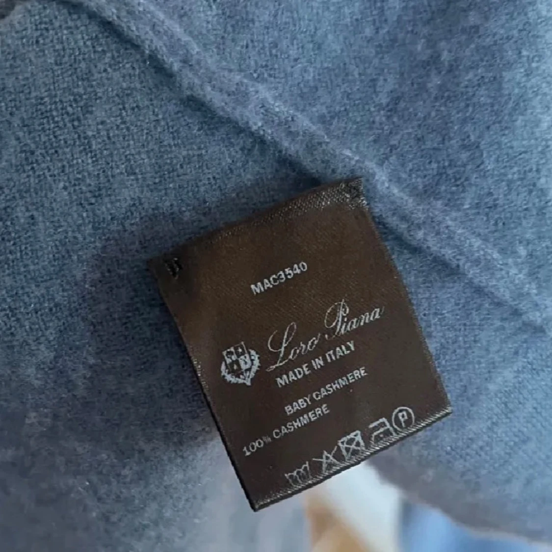 Loro Piana baby cashmere långärmad tröja. Väldigt svår att få tag på, nypris runt 18000kr! Wash taggen e lite lös vid ena sidan som syns på den sista bilden men borde gå att fixa, annors en väldigt snygg tröja!