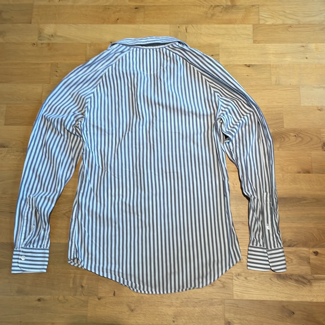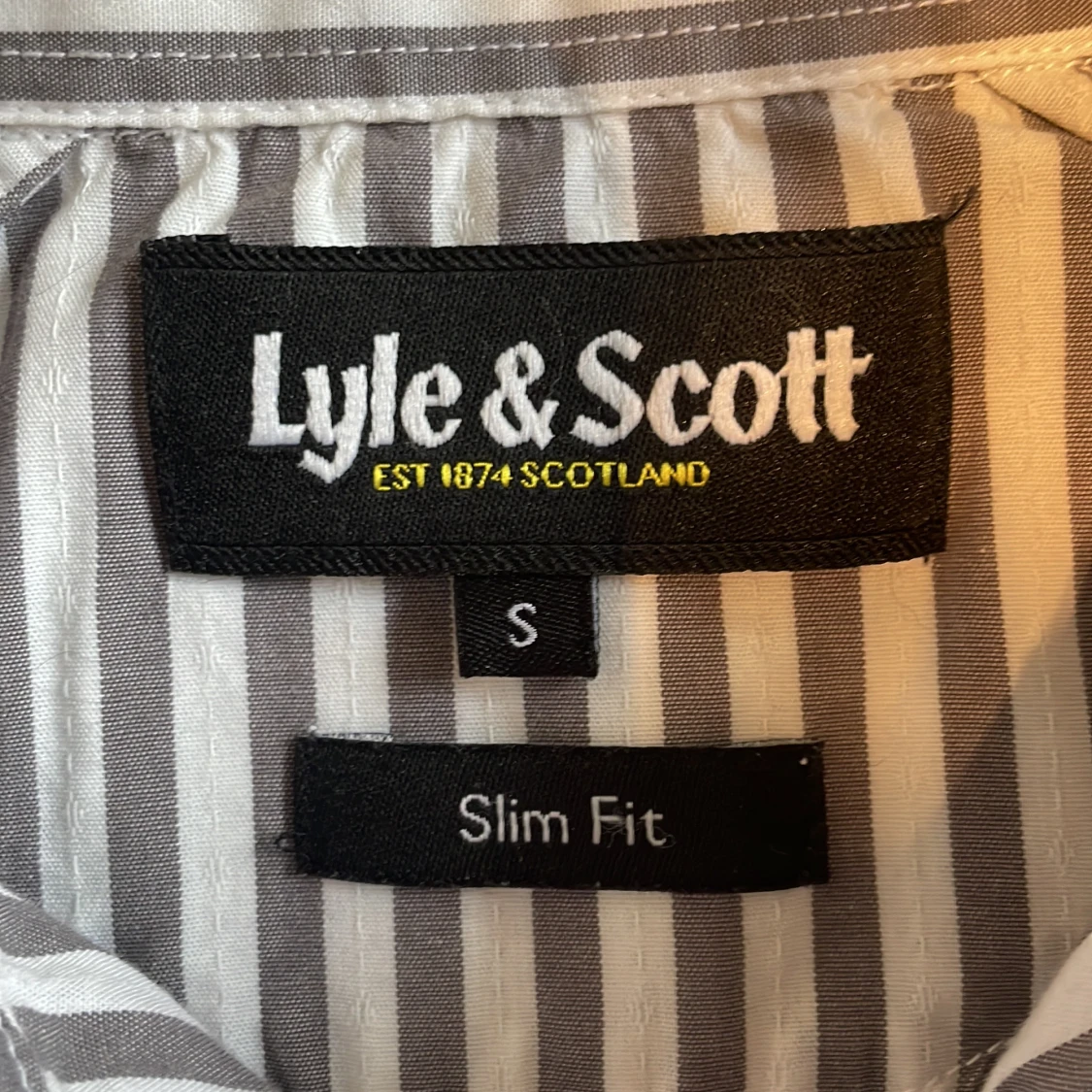 Snygg slim fit skjorta från Lyle & Scott i vitt och grått med vertikala ränder. Klassisk krage, långa ärmar och knappar framtill. Ikonisk gul logga på bröstet. Perfekt för dig som gillar stilrena och fräscha plagg med lite edge. Storlek: S
