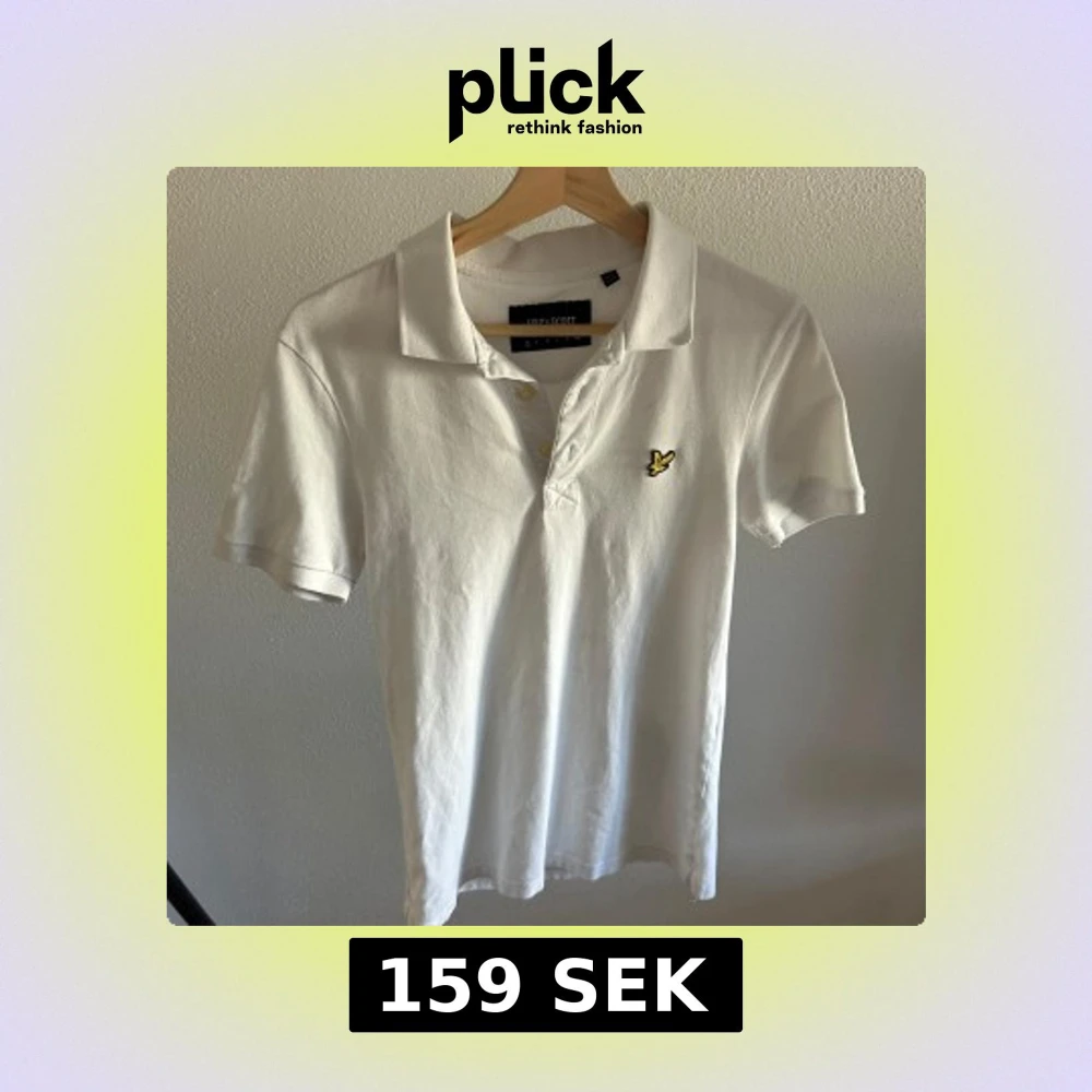 Snygg vit piké från Lyle & Scott i storlek XS. Klassisk krage, korta ärmar och gul broderad logga på bröstet. Tröjan har knappar vid halsen och är gjord i mjuk bomull som känns skön mot huden.