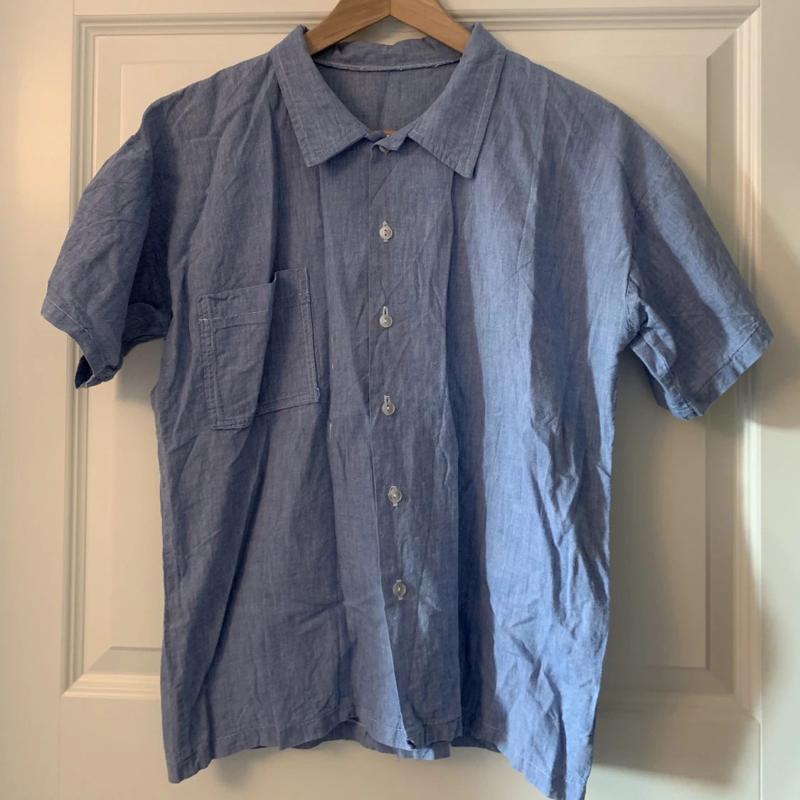 Kortärmad skjorta i blått. Står ingen storlek, som en medium.