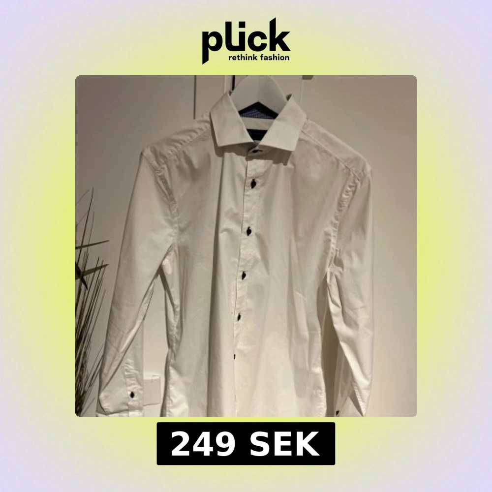 Klassisk vit skjorta från Riley i slim fit med svarta knappar. Perfekt för en stilren look. Tillverkad i bomull med långärmad design och en snygg krage.