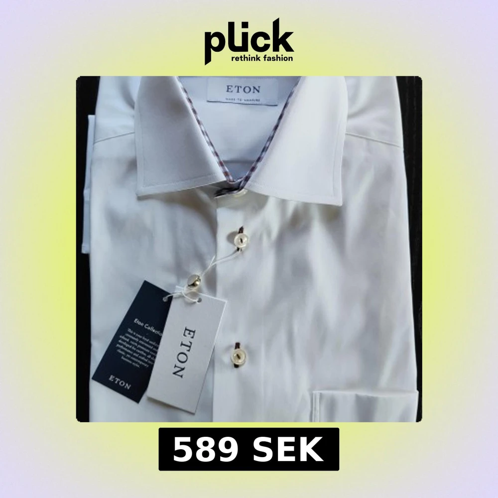 Elegant vit skjorta från Eton med klassisk design och stilrena knappar. Perfekt för en sofistikerad look. Tillverkad med svensk hantverkstradition. Helt ny! Mått:Total length: 84 cm Width from armpit to armpit: 69 cm Waist width: 68 cm Collar width: 51 cm Sleeve length from armpit: 53 cm