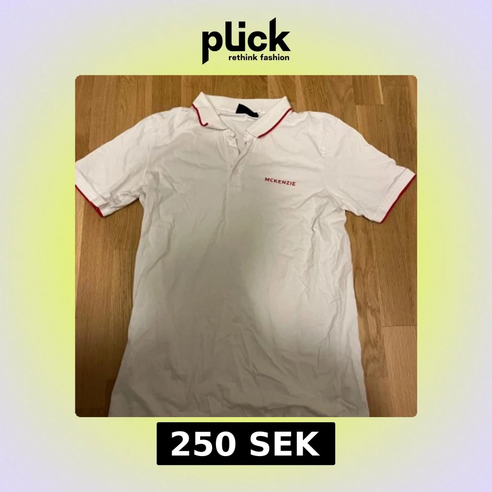 Vit pikétröja från McKenzie med röda detaljer på krage och ärmslut. Klassisk design med korta ärmar, knappar framtill och diskret logga på bröstet. Perfekt för en clean och sportig look. Materialet är mjuk bomull som känns skönt mot huden.