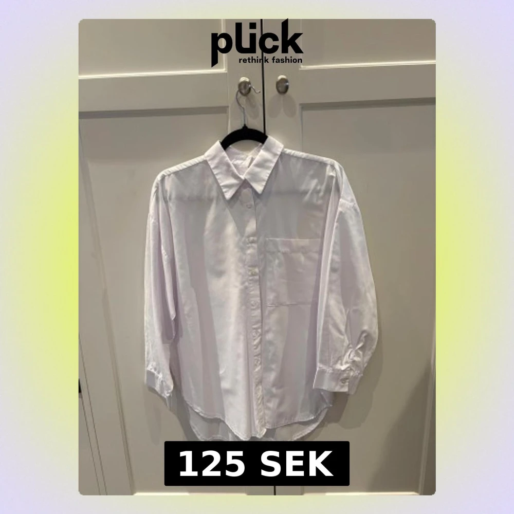 Snygg vit skjorta med klassisk krage och knappar framtill. Skjortan har en stor bröstficka och långa ärmar med knapp vid manschetten och detalj bak med knappar. Materialet känns som bomull och passformen är loose, perfekt för en chill och stilren look.