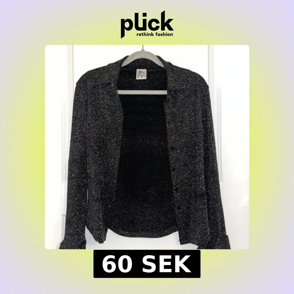 Säljer en svart skjorta från Authentic med glittriga inslag. Skjortan har lång ärm, klassisk krage och knäppning framtill. Perfekt för dig som vill sticka ut lite extra med en snygg och glittrig look. Storlek M, S. Använd en gång. Köpt i Grekland.