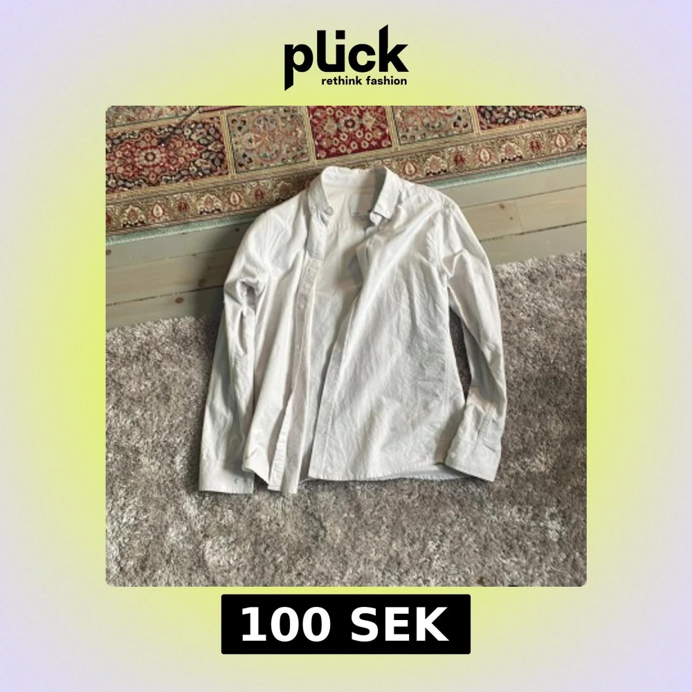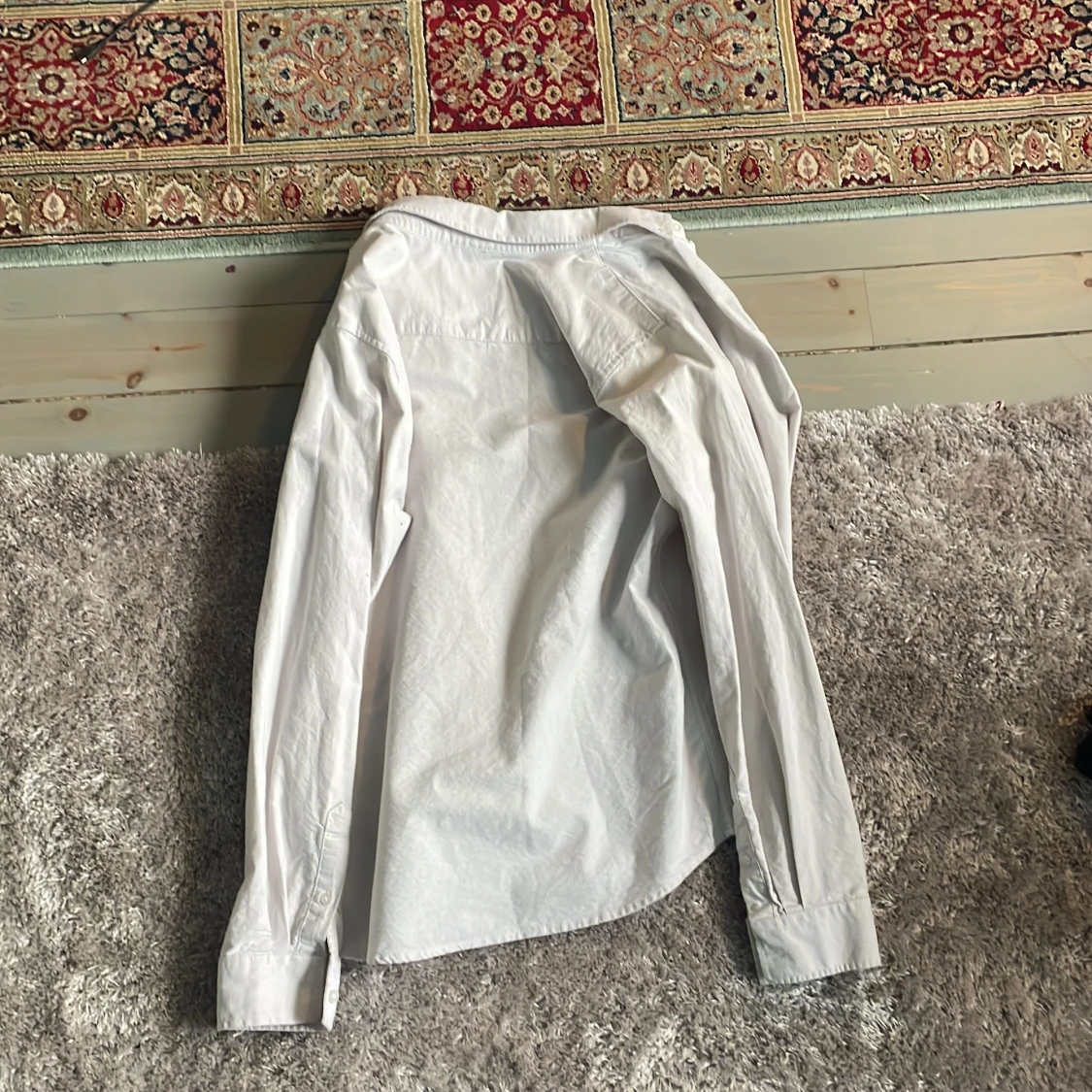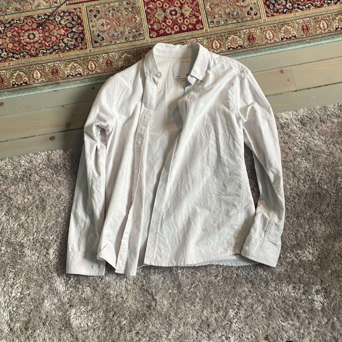 Klassisk vit skjorta med långa ärmar och knappar. Perfekt för en stilren look.