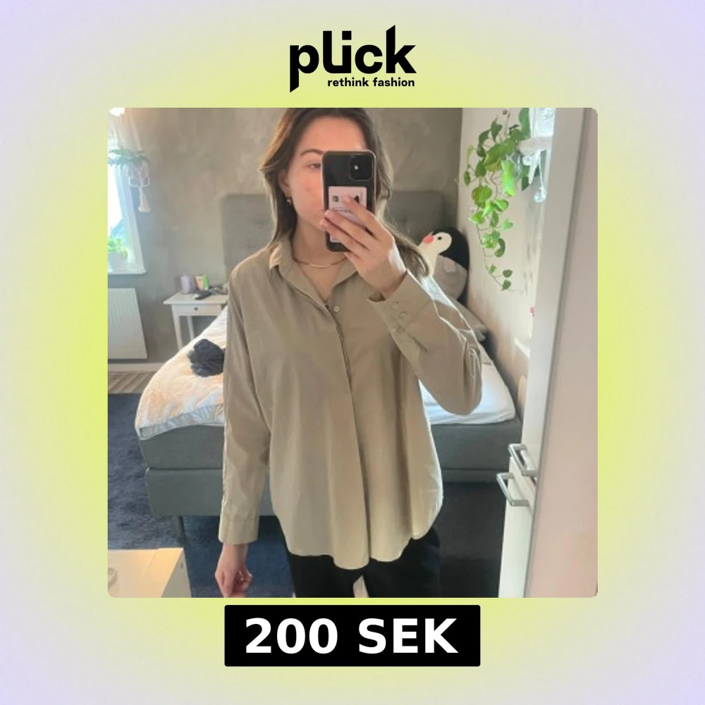 Snygg beige skjorta med långa ärmar och klassisk krage. Perfekt för en stilren look. Skjortan har en avslappnad passform och knappar framtill.