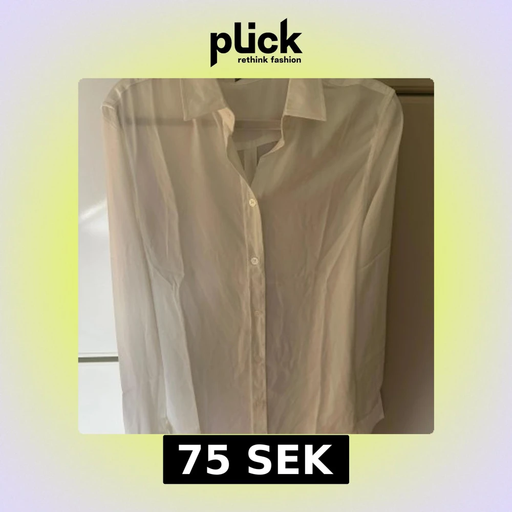 Säljer en klassisk vit långärmad skjorta med knappar framtill. Skjortan har en stilren design med krage och är perfekt för en elegant look. Materialet är lätt och bekvämt. Nytt och oanvänd