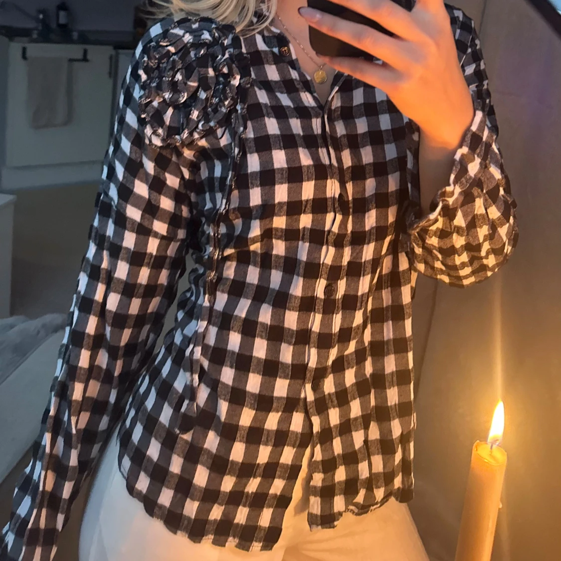 Rutig skjorta med ros pĂ„ ena sidanđ€đ€ StĂ„r ingen storlek men skulle uppskatta den som en M/L