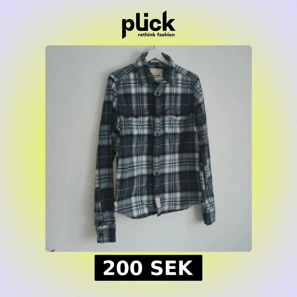 Säljer en stilren rutig skjorta från Abercrombie & Fitch i blått, vitt och gult. Skjortan har långa ärmar och knappar framtill. Perfekt för en avslappnad look.