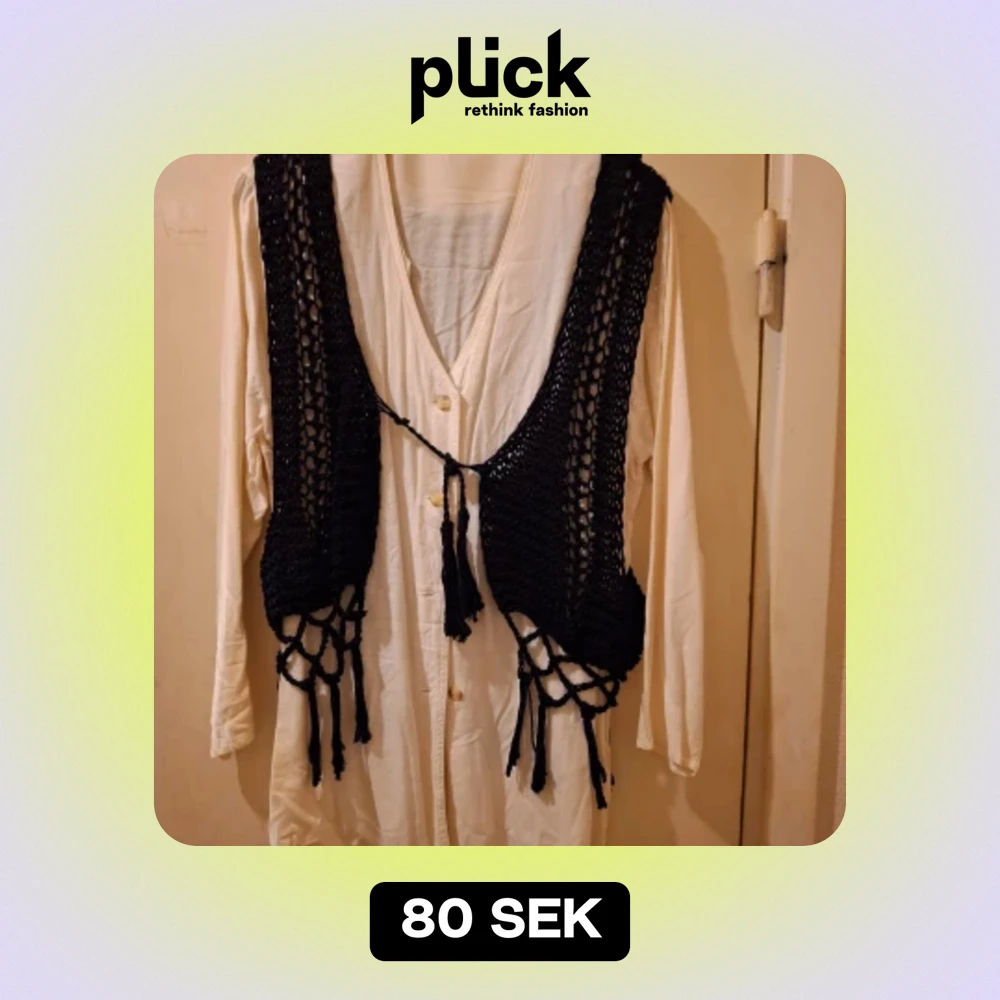 Snygg svart väst med fransar. Västen är virkad och har ett fint mönster. Skjortan är strl M