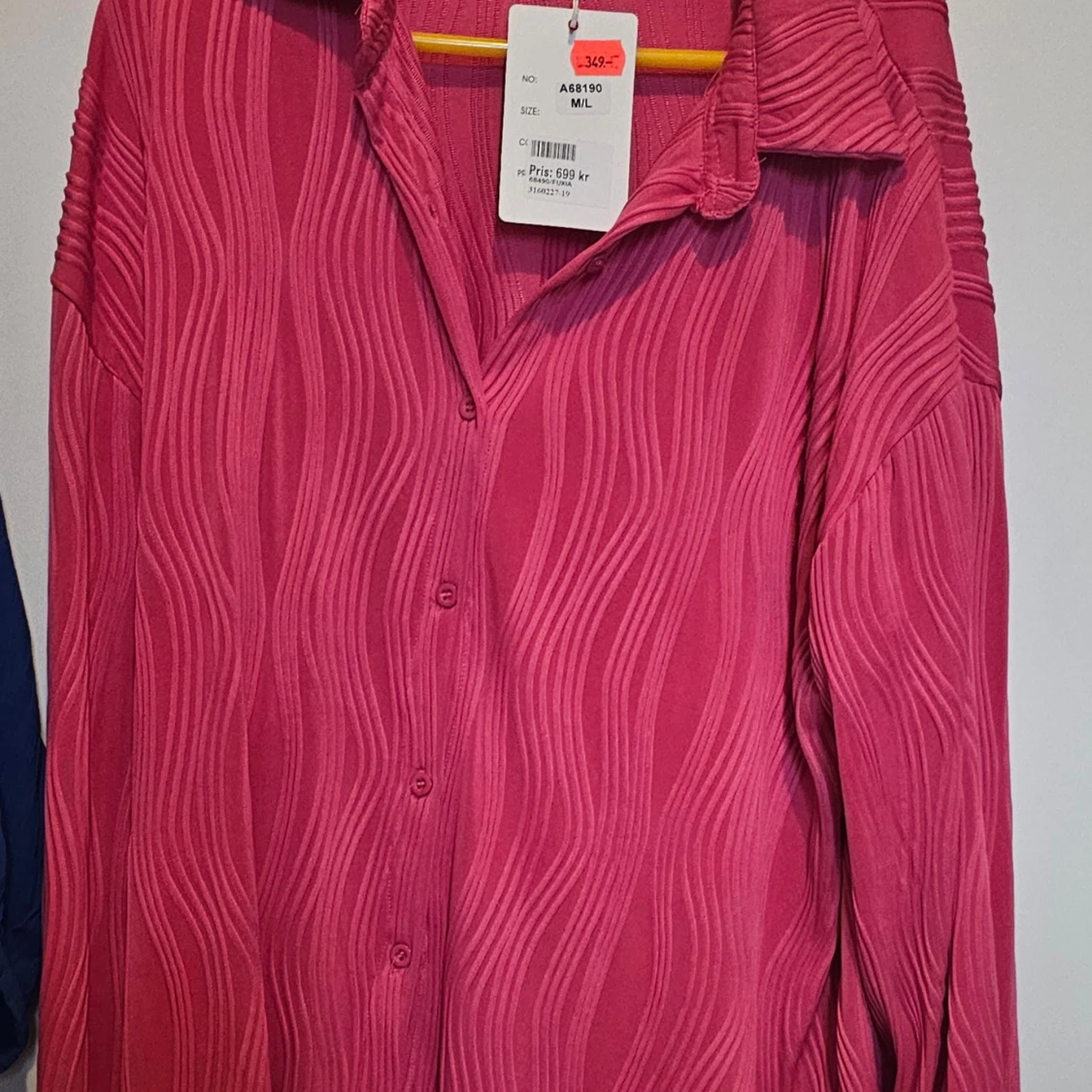 Säljer en rosa skjorta från Flam Mode i storlek M/L. Skjortan har ett vågigt strukturmönster, klassisk krage och knäppning framtill. Långärmad och i ett mjukt, lätt material som känns skönt mot huden. Perfekt för dig som gillar färg och unika detaljer.