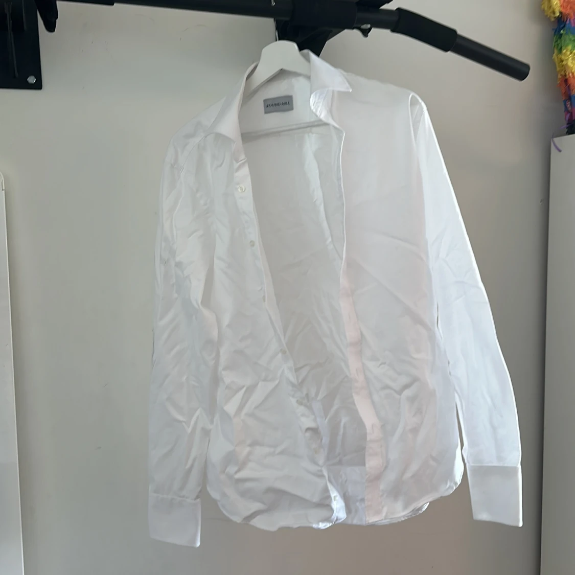 Vit skjorta av märket Roundhill. Ostruken och har några mindre fläckar och skavanker som säkert går att få bort, därav priset.