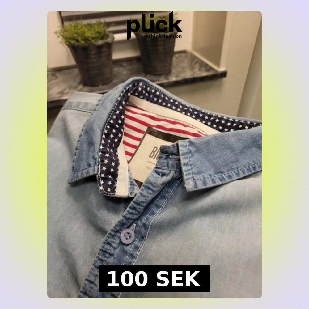 Ljusblå jeansskjorta från Big Star med lång ärm, bröstficka och coola detaljer som stjärnmönstrat tyg på insidan av kragen och rödvita ränder. Skjortan har knappar framtill och diskreta rutiga detaljer på ärmarna.
