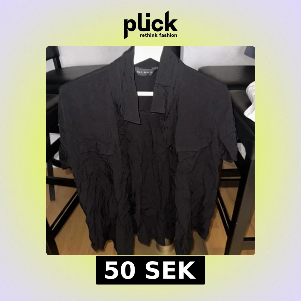 Svart skjorta med korta ärmar och klassisk krage. Skjortan har knappar framtill och två bröstfickor med lock. Materialet är lätt och skrynklar sig snyggt för en avslappnad look. Perfekt till jeans eller shorts för en chill stil.