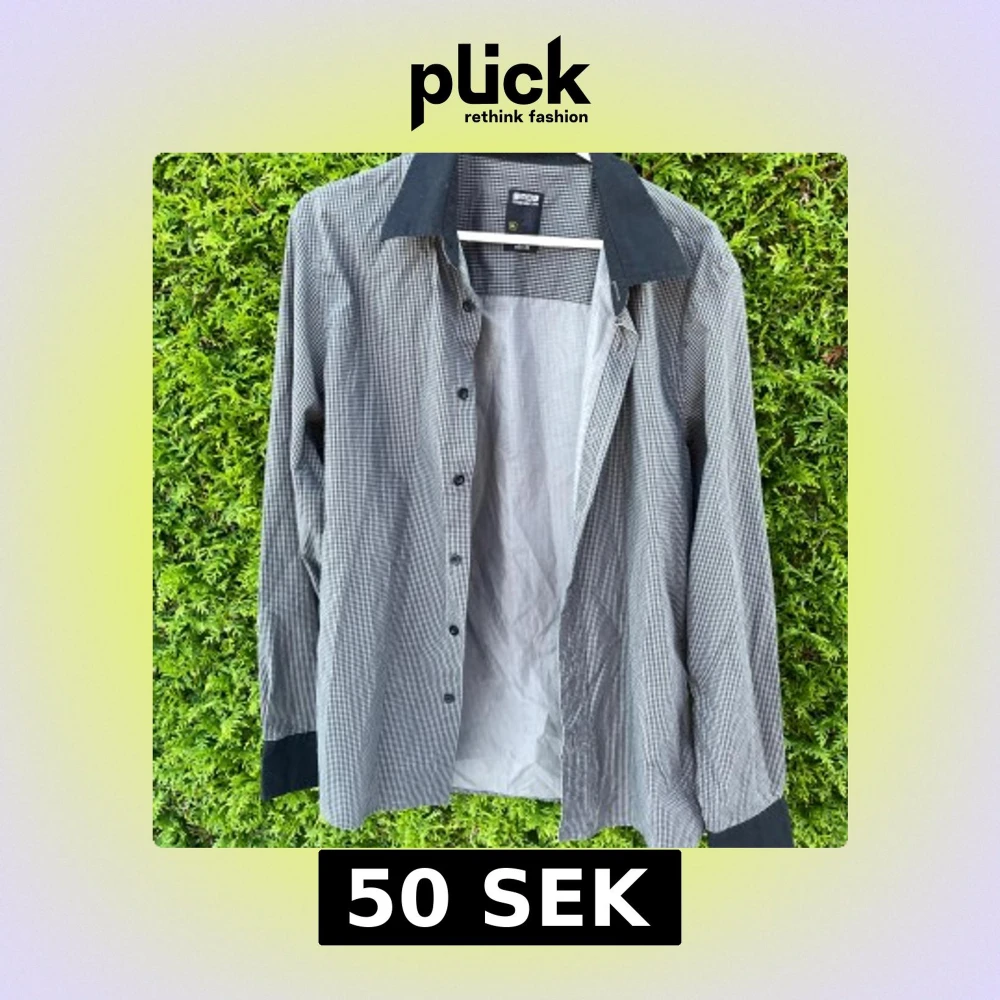 Snygg rutig skjorta i svart och vitt med kontrasterande svart krage och svarta muddar. Skjortan har klassisk passform, knappar framtill och lång ärm.