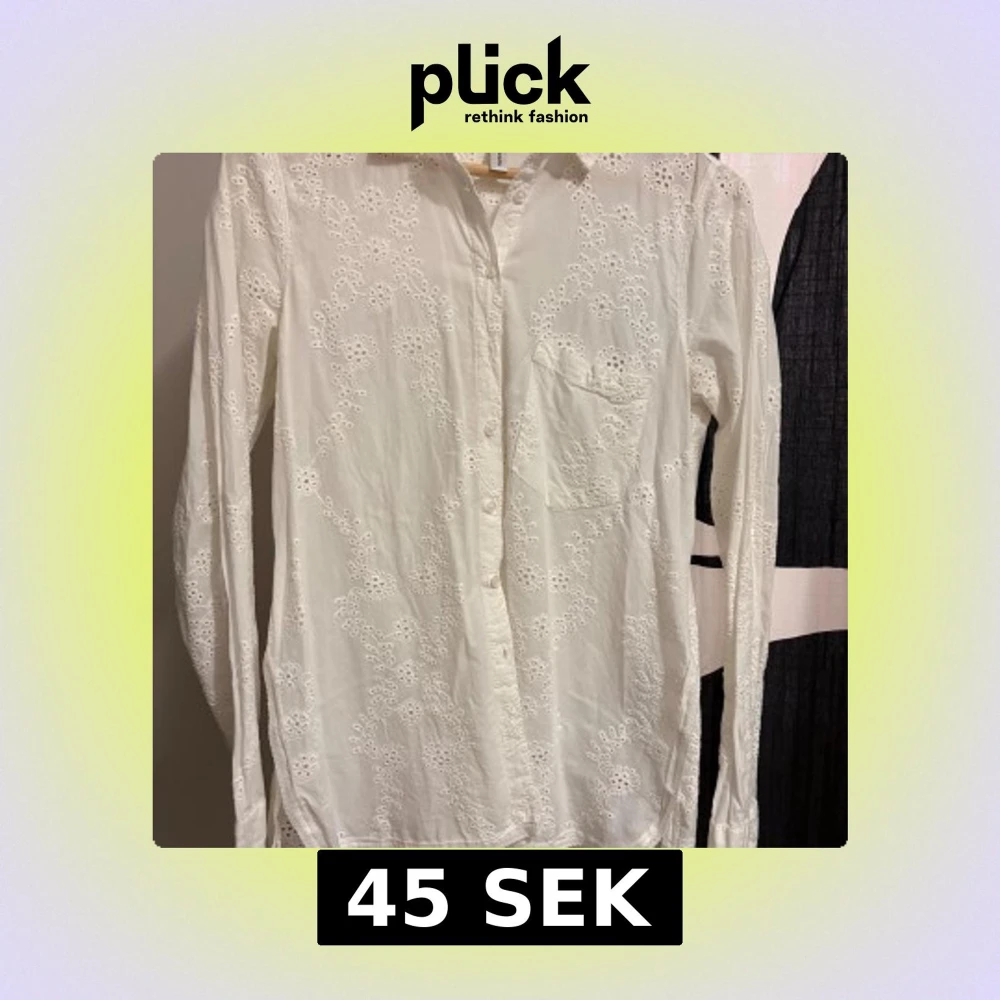 Snygg vit skjorta från Soyaconcept med broderade blommor och hålmönster över hela plagget. Skjortan har klassisk krage, knappar framtill, bröstficka och slits i sidorna. Långärmad och tillverkad i mjuk bomull som känns skön mot huden.