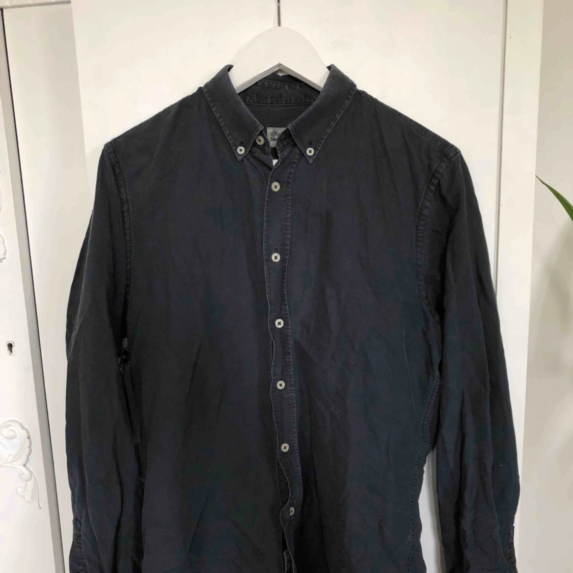 Favoritskjorta, tyvärr vuxit ur den. Superbekvämt material, snygg svart/mörkgrå färg.