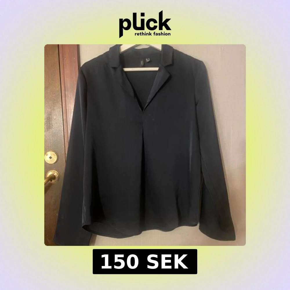 Stilren marinblå skjorta från Vera Moda med lång ärm och klassisk krage. Skjortan har en rak passform och är tillverkad i ett mjukt, lätt material som ger en snygg siluett.