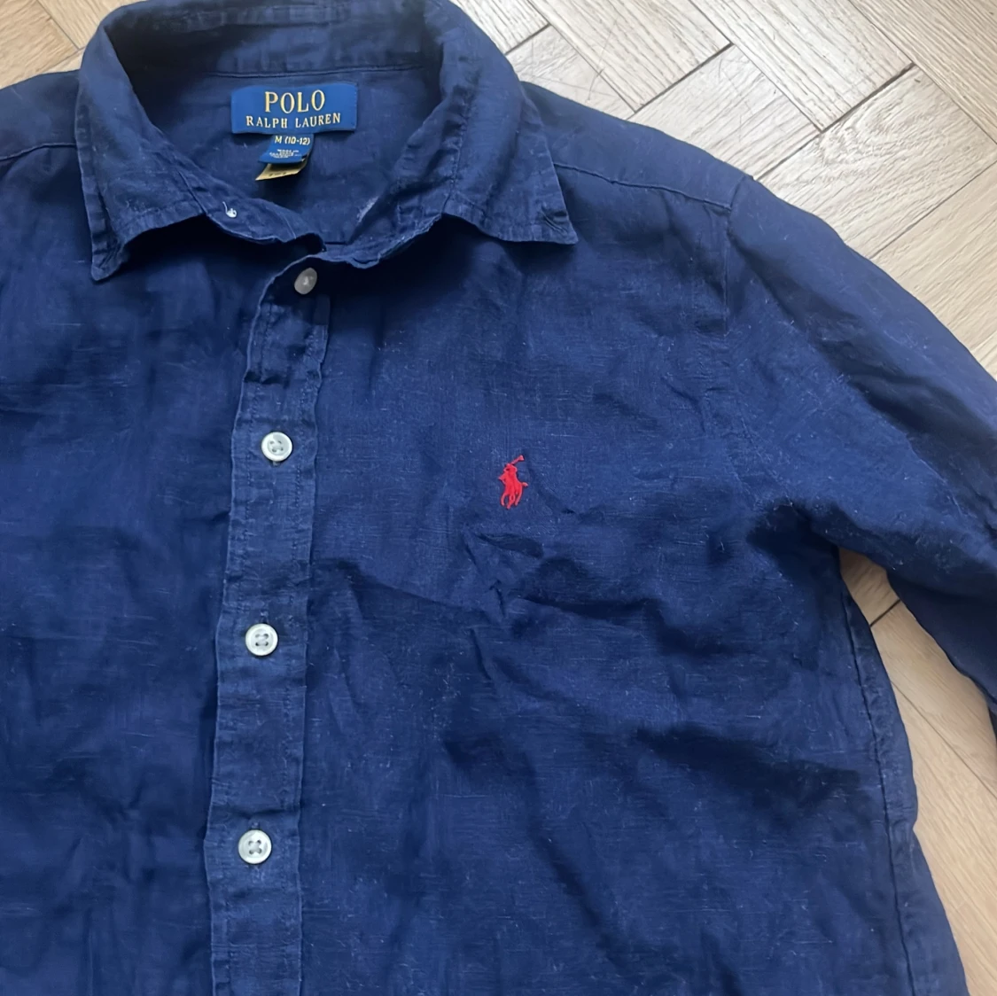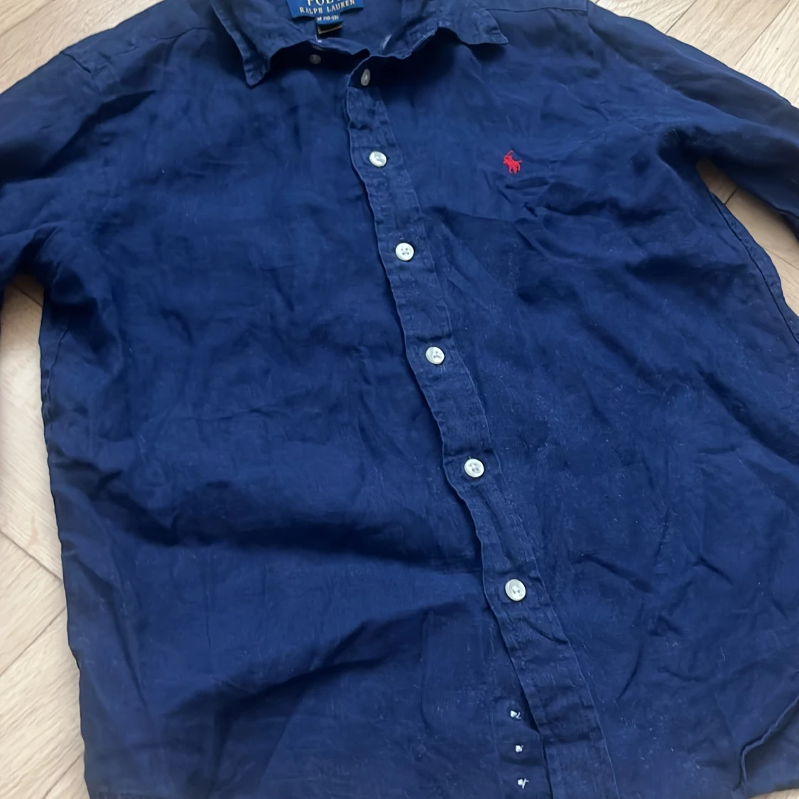 Snygg marinblå skjorta från Polo Ralph Lauren i linne med klassisk krage och vita knappar. Skjortan har lång ärm och den ikoniska röda loggan broderad på bröstet. Perfekt för en stilren och avslappnad look.