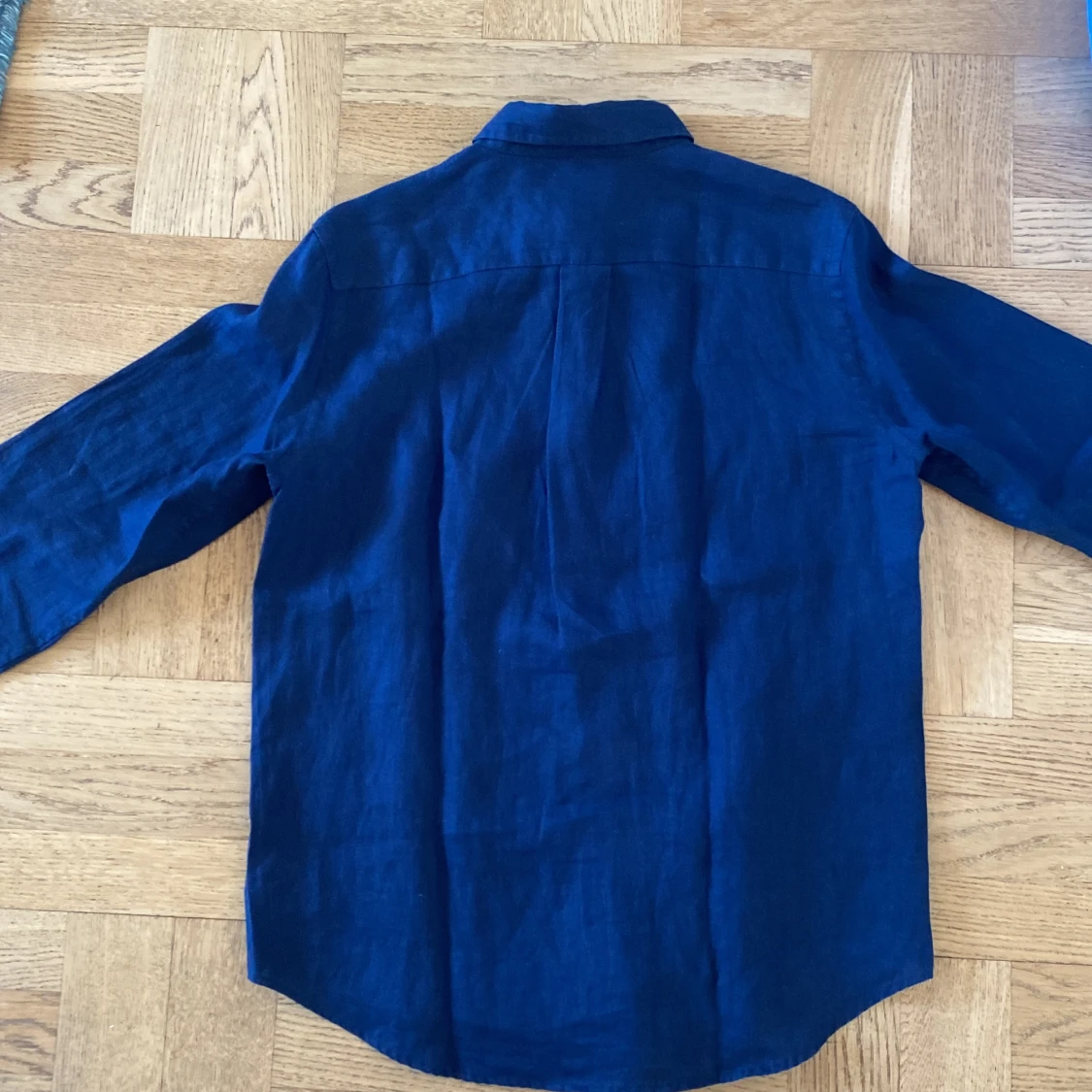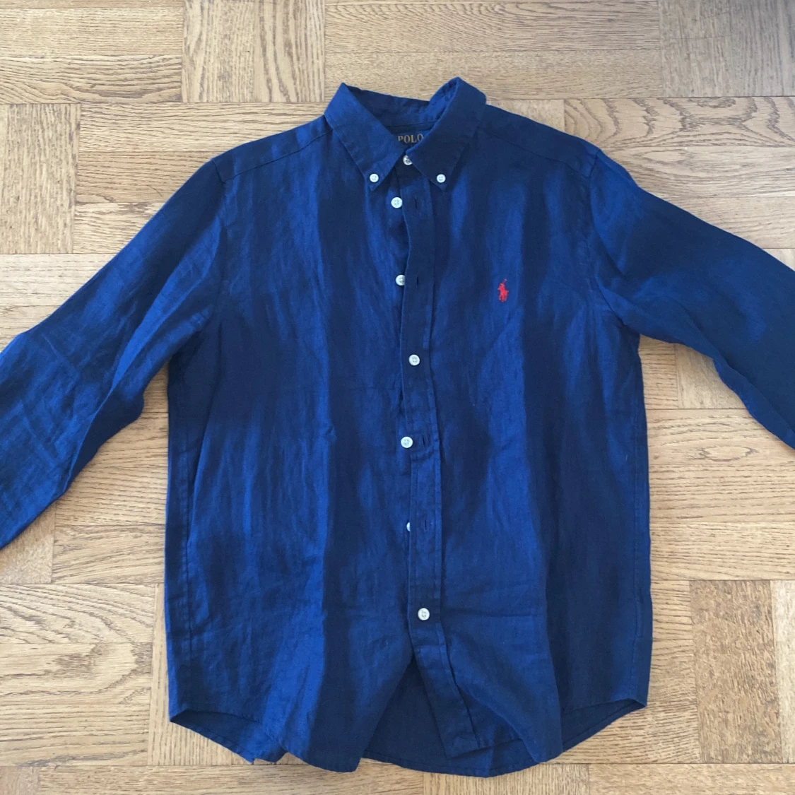 Snygg marinblå skjorta från Polo Ralph Lauren i 100% linne. Klassisk button-down krage, långa ärmar och vita knappar framtill. Röd broderad logga på bröstet ger en clean och stilren look. Perfekt för dig som gillar avslappnad men ändå dressad stil. Original pris: 1200kr använd 1 gång