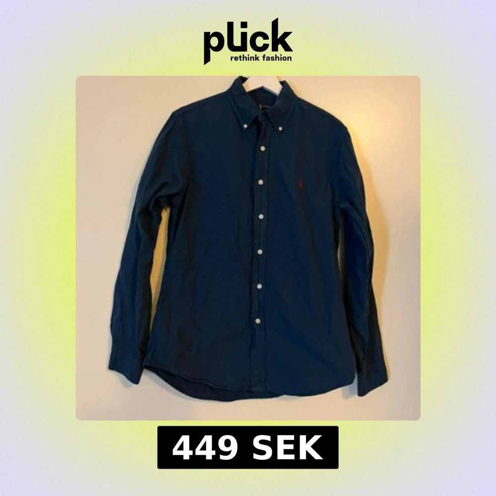 Säljer denna marinblåa Ralph lauren skjorta i modellen slim fit. Ljuset på bilderna i spegeln gör så att skjortan ser ljusare ut än vad den är. Bra skick!
