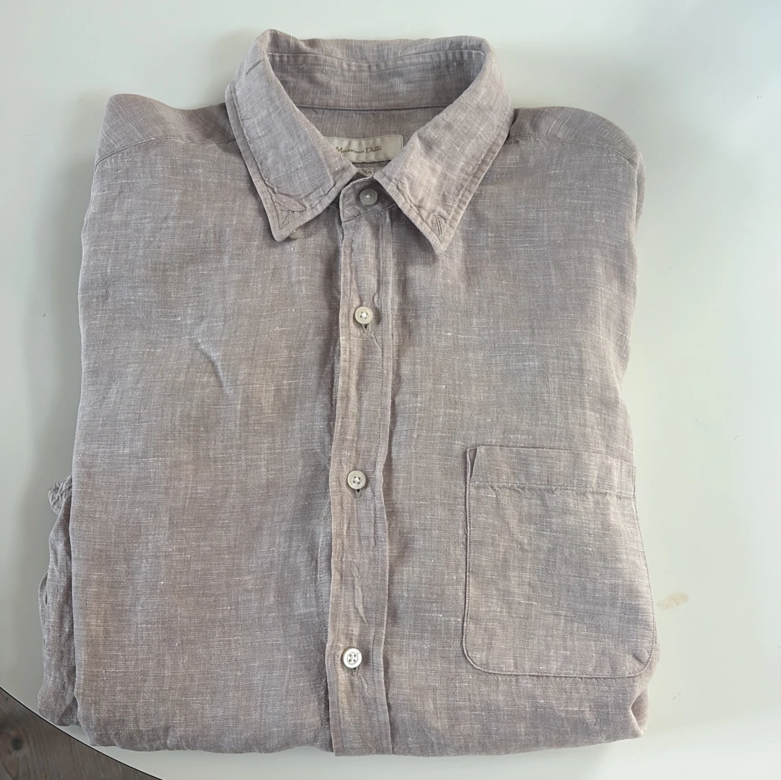 Snygg beige skjorta i linne från Massimo Dutti med klassisk krage, bröstficka och knappar framtill.
