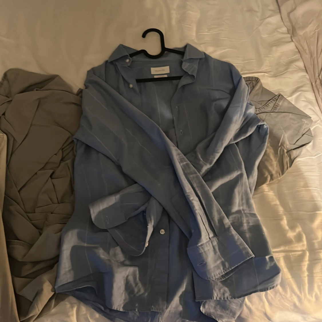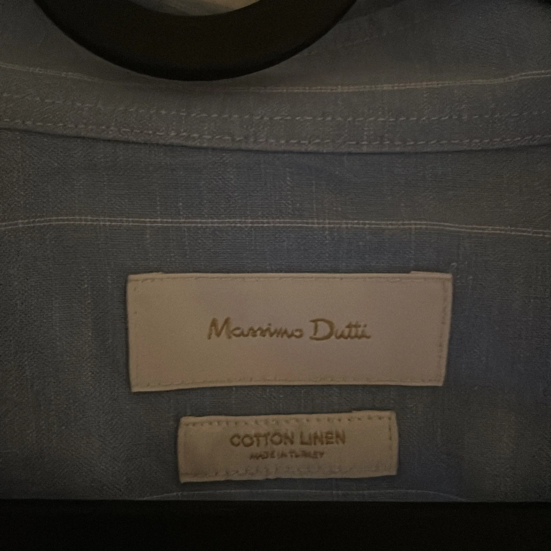 Snygg blå skjorta från Massimo Dutti i bomull och linne. Skjortan har diskreta vita ränder, klassisk krage och knäppning framtill. Perfekt för dig som gillar en clean och stilren look. Långärmad modell med avslappnad passform.