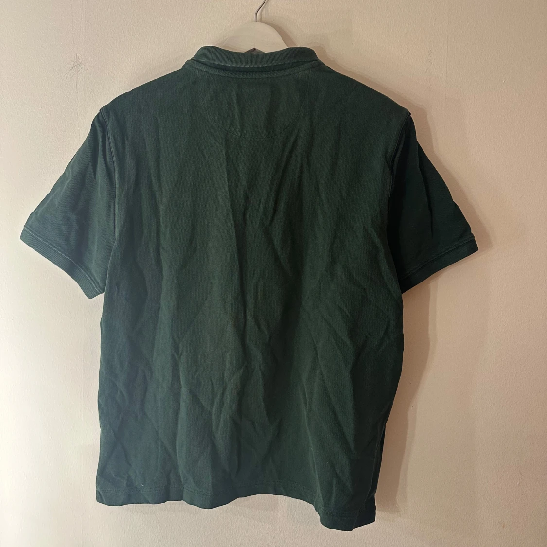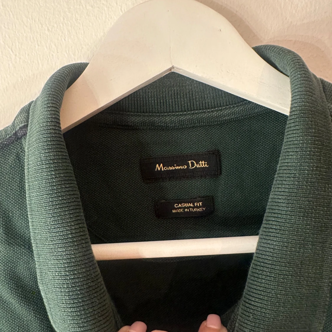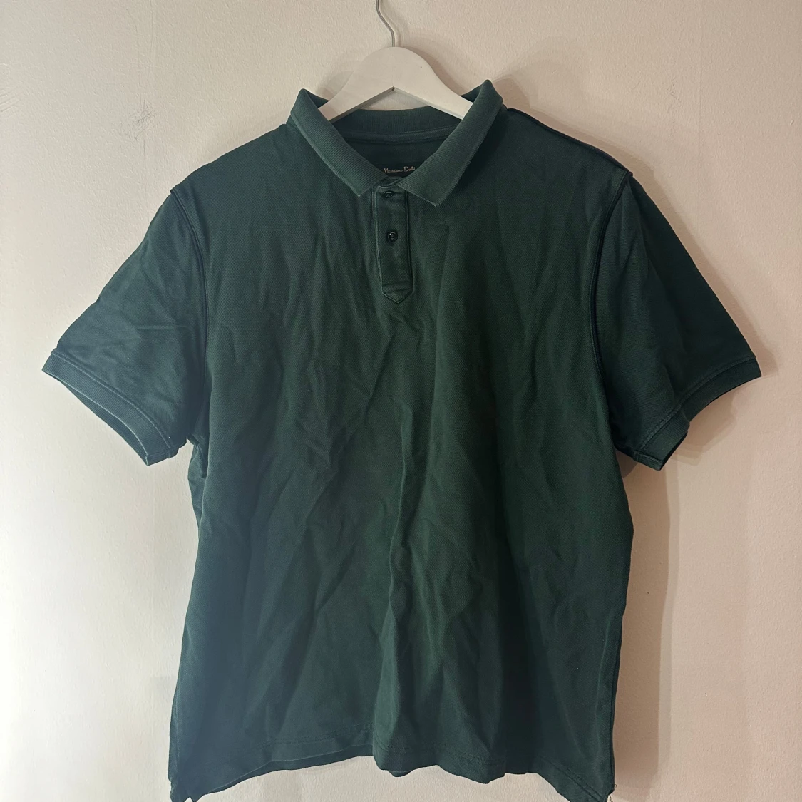 Snygg mörkgrön pikétröja från Massimo Dutti i klassisk modell med krage och knappar framtill. Tillverkad i mjuk bomull och har korta ärmar. Perfekt för en clean och stilren look, funkar året runt och är enkel att matcha med jeans eller shorts. Står att det är en storlek XL men är mer en M, köpt utomlands så därför storleken kan skilja sig