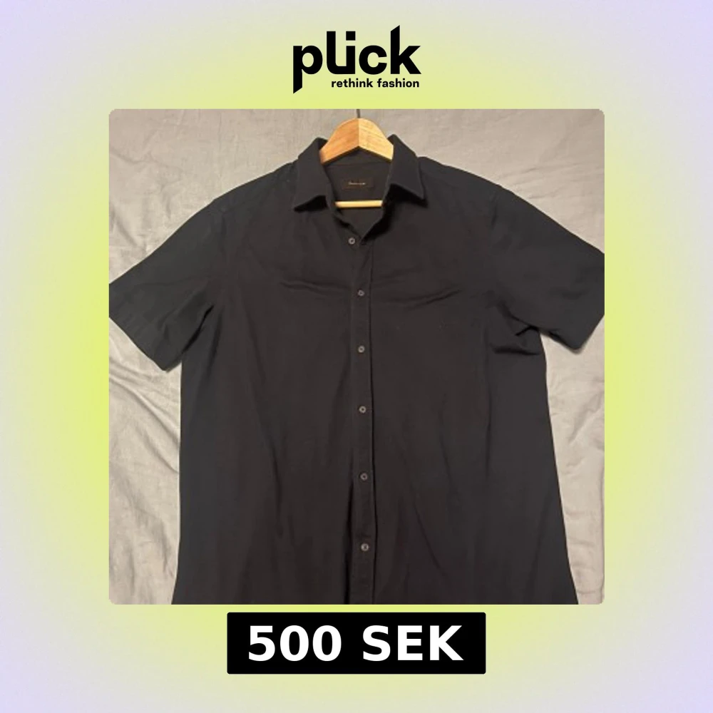 Säljer en stilren svart kortärmad skjorta från Massimo Dutti. Skjortan har en klassisk krage och knappar framtill. Perfekt för en elegant och avslappnad look.