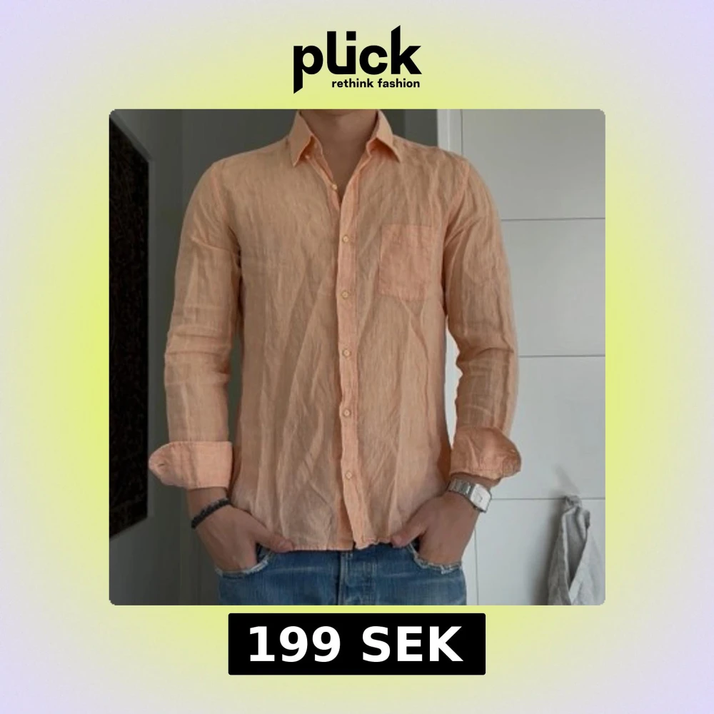 Snygg persikofärgad skjorta från Massimo Dutti i 100% linne. Skjortan har klassisk krage, bröstficka och knäppning framtill. Långärmad och perfekt för varmare dagar när du vill ha en chill och stilren look.