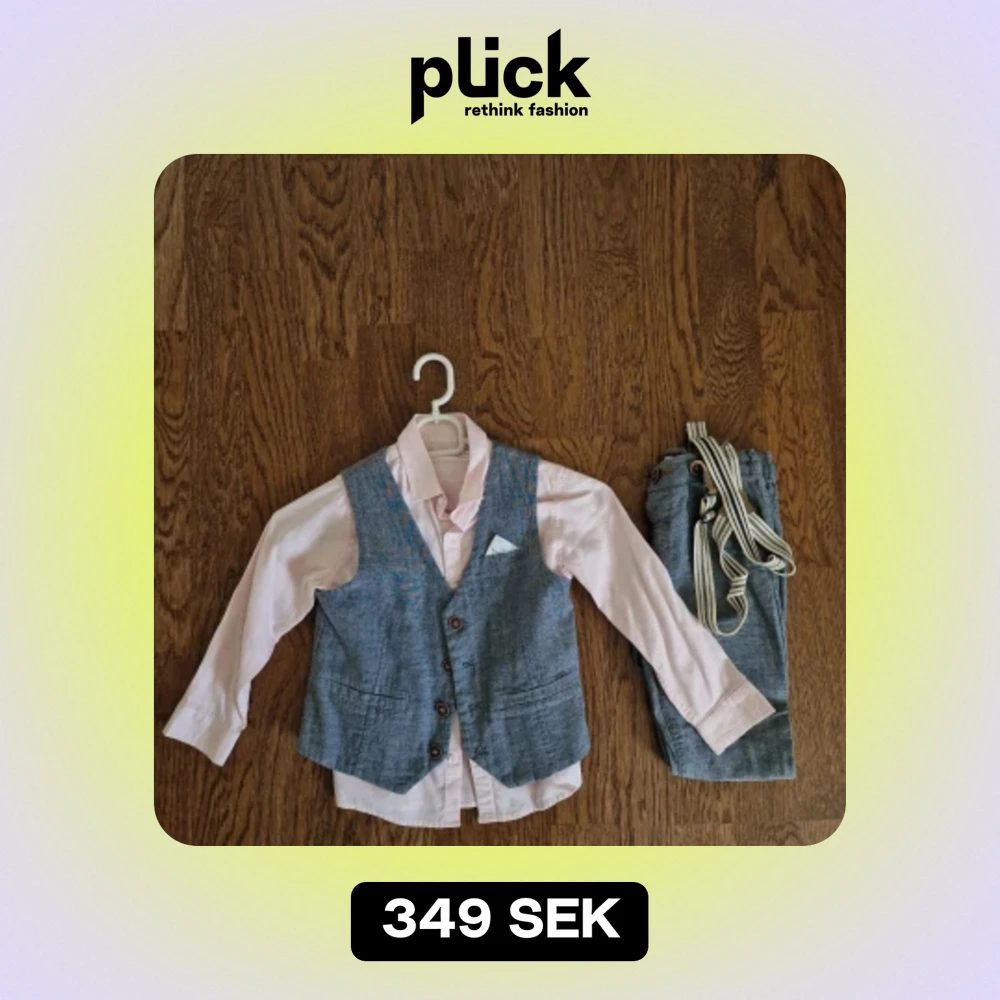 Säljer min brors gamla rosa skjorta, väst och byxor. Det är.en väldigt söt outfit som passar barn som är mellan 3-4 år. Den har används max 2-3 gånger. Släpper allt för 349:-