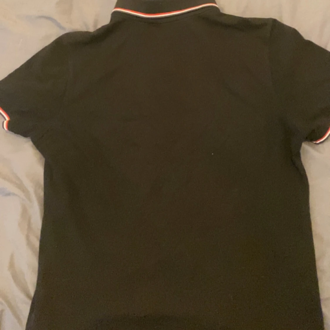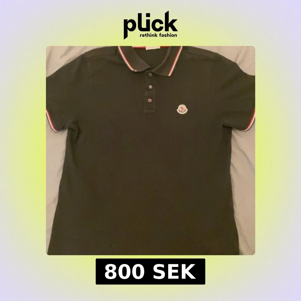 Svart pikétröja från Moncler med klassisk krage och knappar framtill. Sitter bra och väldig stilig.