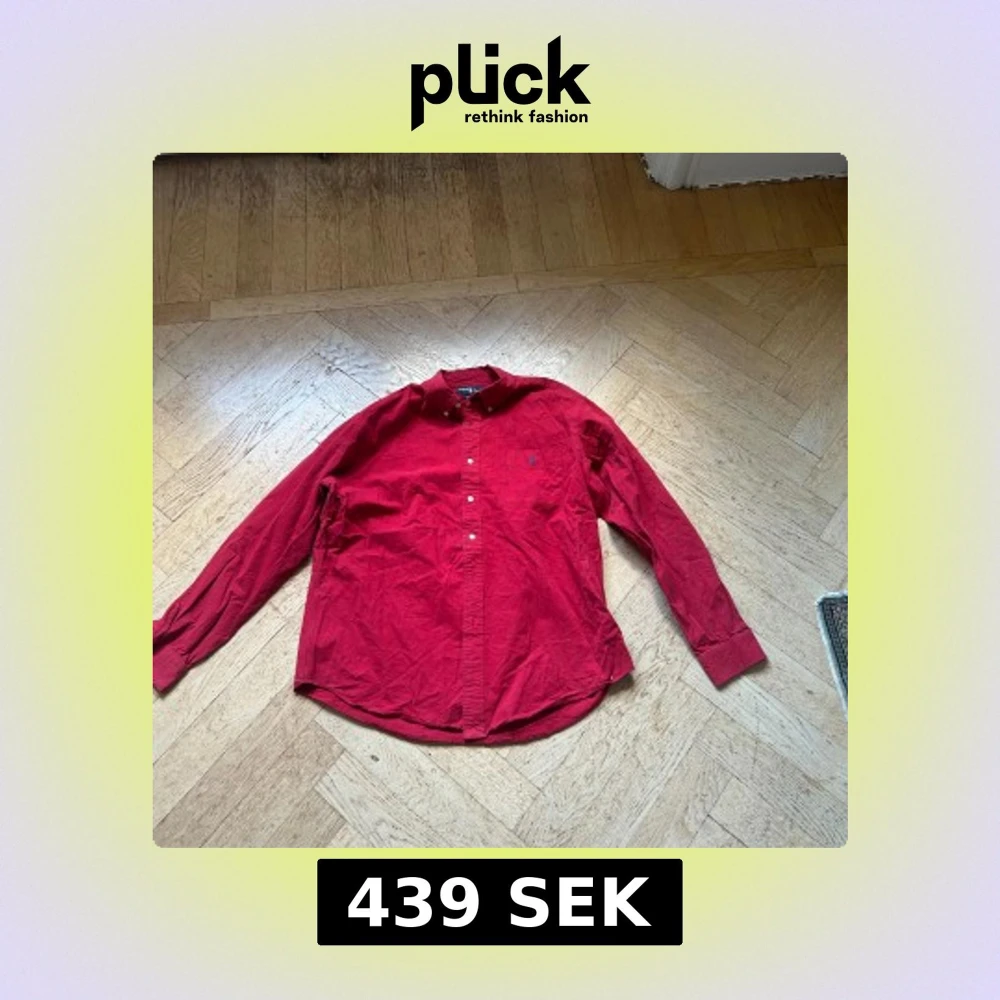 Klassisk röd skjorta från Ralph Lauren i bomull med button down-krage och blå broderad logga på bröstfickan. Skjortan har vita knappar och lång ärm, perfekt för en stilren och avslappnad look.
