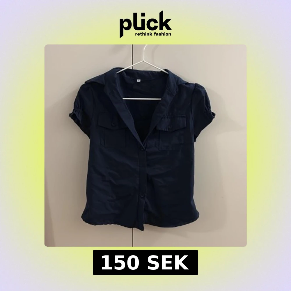 Snygg mörkblå skjorta med korta puffärmar och två bröstfickor med knappar. Skjortan har klassisk krage och knäppning framtill. Perfekt för dig som gillar enkel och stilren design.