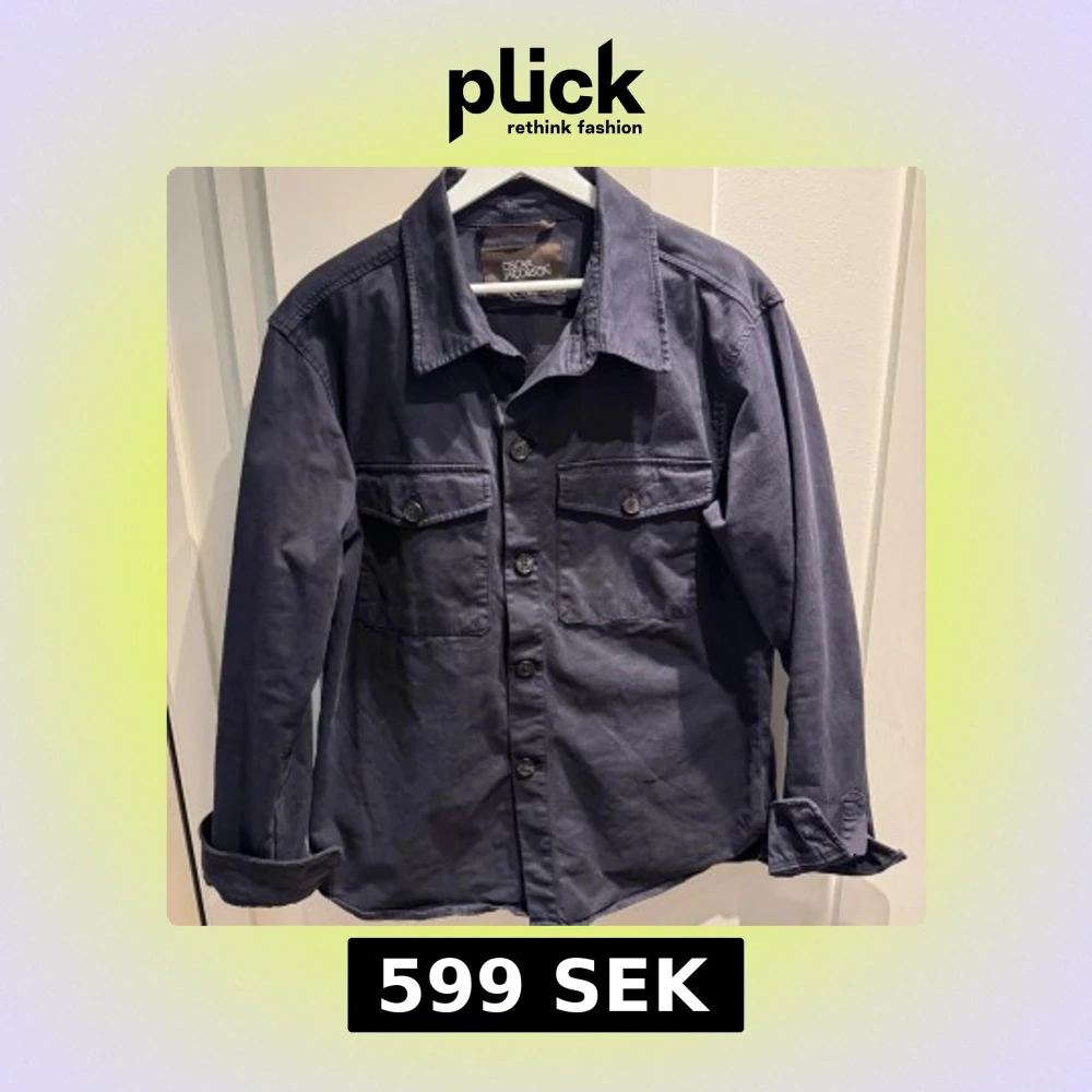 Säljer en stilren mörkblå overshirt från Oscar Jacobson. Skjortan har två bröstfickor med knappar, klassisk krage och långa ärmar. Perfekt att bära öppen eller stängd för en avslappnad look.