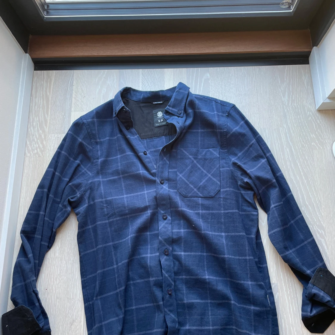Snygg mörkblå rutig skjorta i flanell tyg.knappt använd mycket bra skick. 150kr+frakt