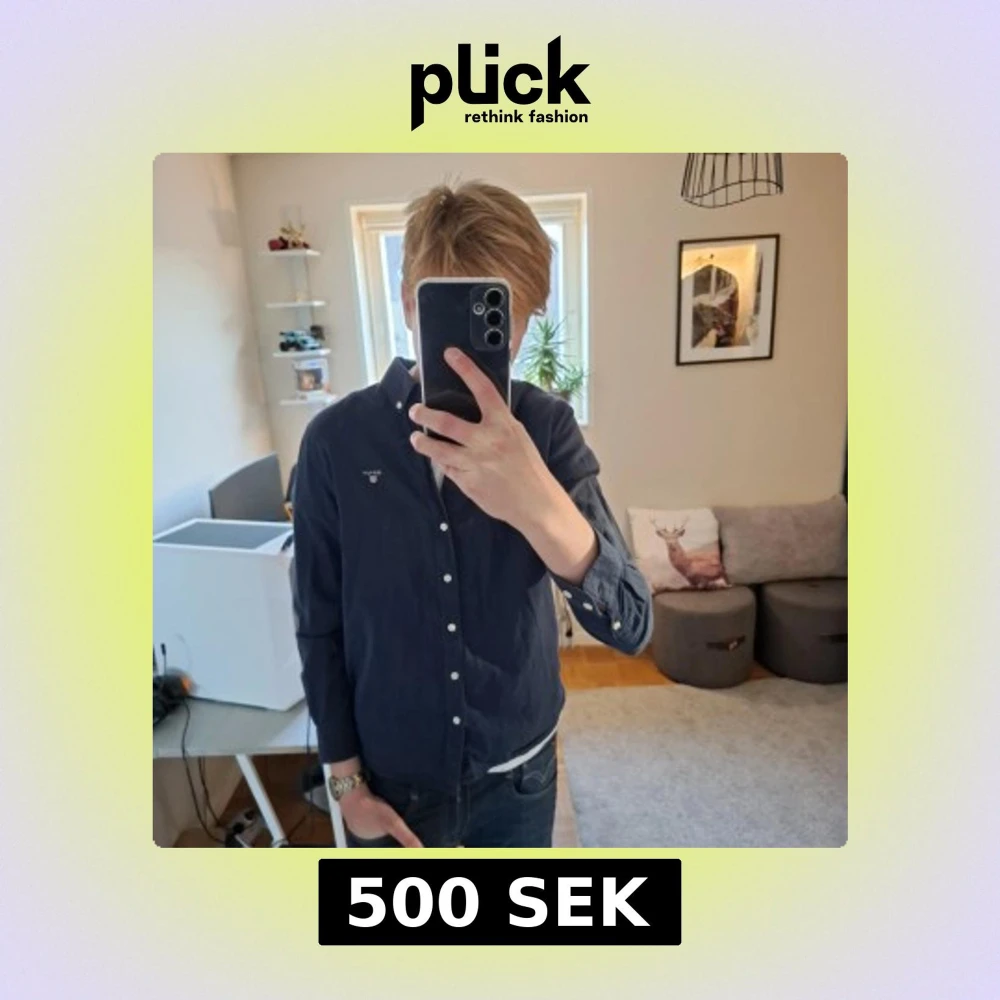 Nypris 1200 kr. Snygg mörkblå skjorta från GANT med klassisk button-down krage och vita knappar hela vägen. Skjortan har lång ärm och broderad logga på bröstet. Tillverkad i mjuk bomull som känns skön mot huden. Perfekt för dig som gillar stilrena och tidlösa plagg.
