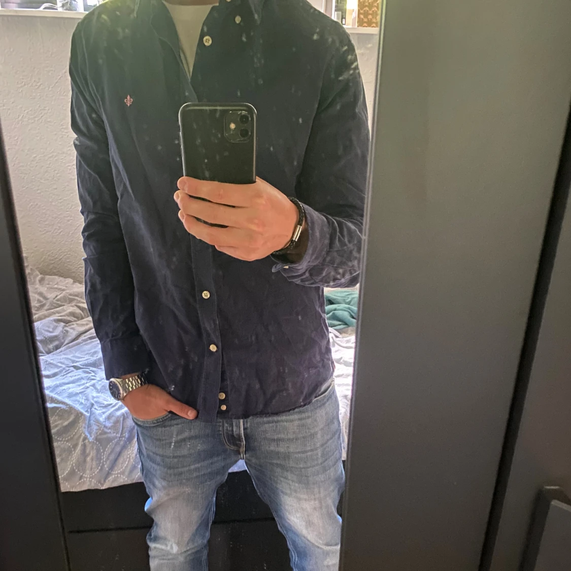 Mörkblå skjorta från Morris i storlek M. Väldigt fint skick, knappt använd. Nypris: 1399kr. Mitt pris: 399kr.