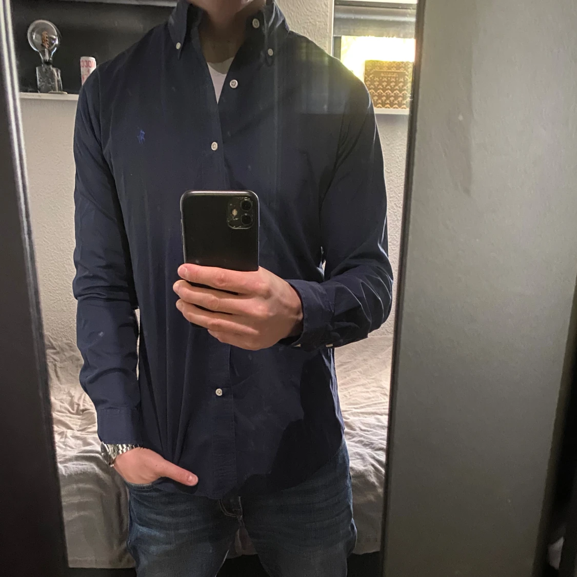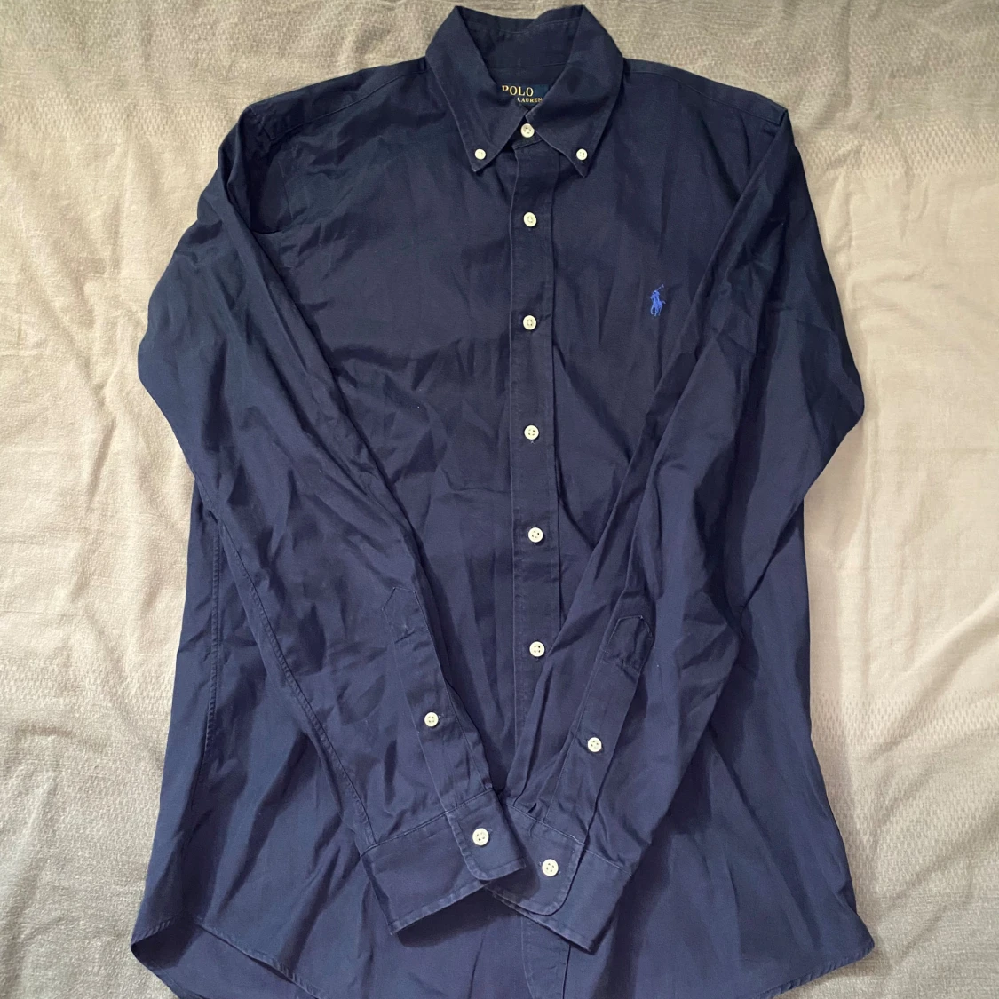 Mörkblå skjorta från Ralph Lauren i storlek S. Fint skick till ett bra pris. Nypris: 1995kr. Mitt pris: 299kr Vid frågor eller funderingar, tveka inte att höra av dig.