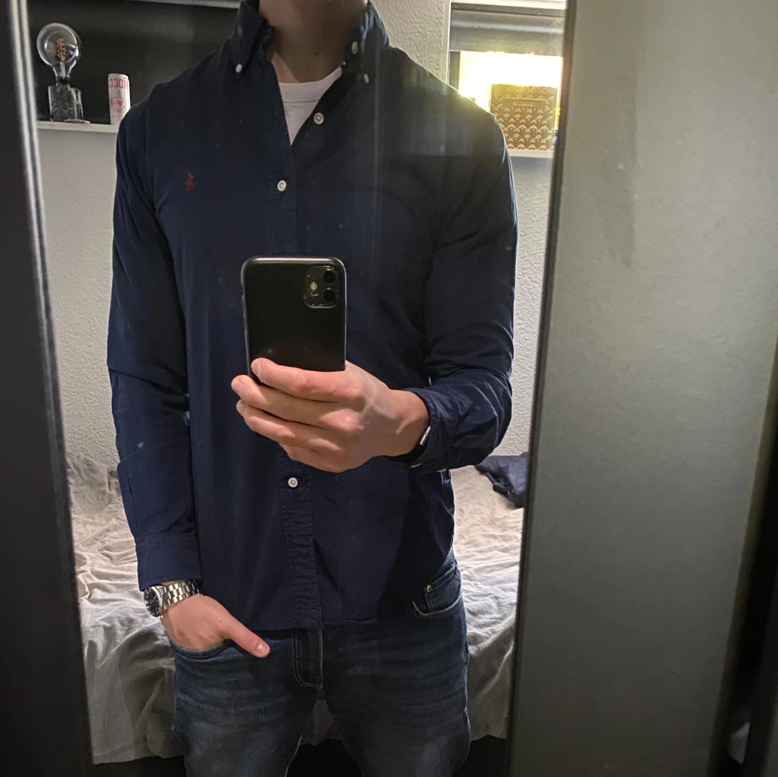 Mörkblå skjorta från Ralph Lauren i storlek S. Fint skick till ett bra pris. Nypris: 1995kr. Mitt pris: 299kr Vid frågor eller funderingar, tveka inte att höra av dig.