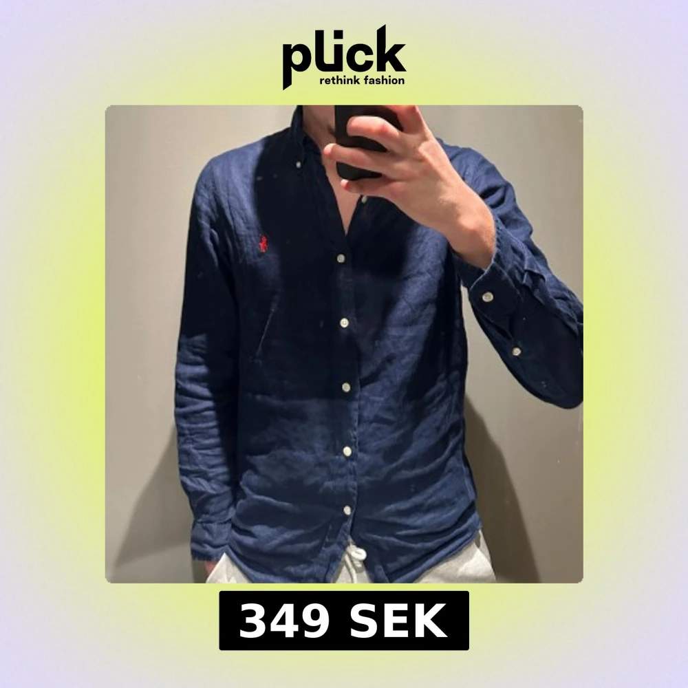 Snygg mörkblå skjorta från Ralph Lauren med klassisk krage och knappar framtill. Skjortan har långa ärmar och en liten röd broderad logga på bröstet. Perfekt för en stilren look. Inköpt förra sommaren, men är redan trött på färgen så därav vill jag sälja den. Den är perfekt nu inför sommaren och ni kan göra ett riktigt kap om ni köper den! Har ni frågor? Bara att höra av sig! Storlek M, custom fit.