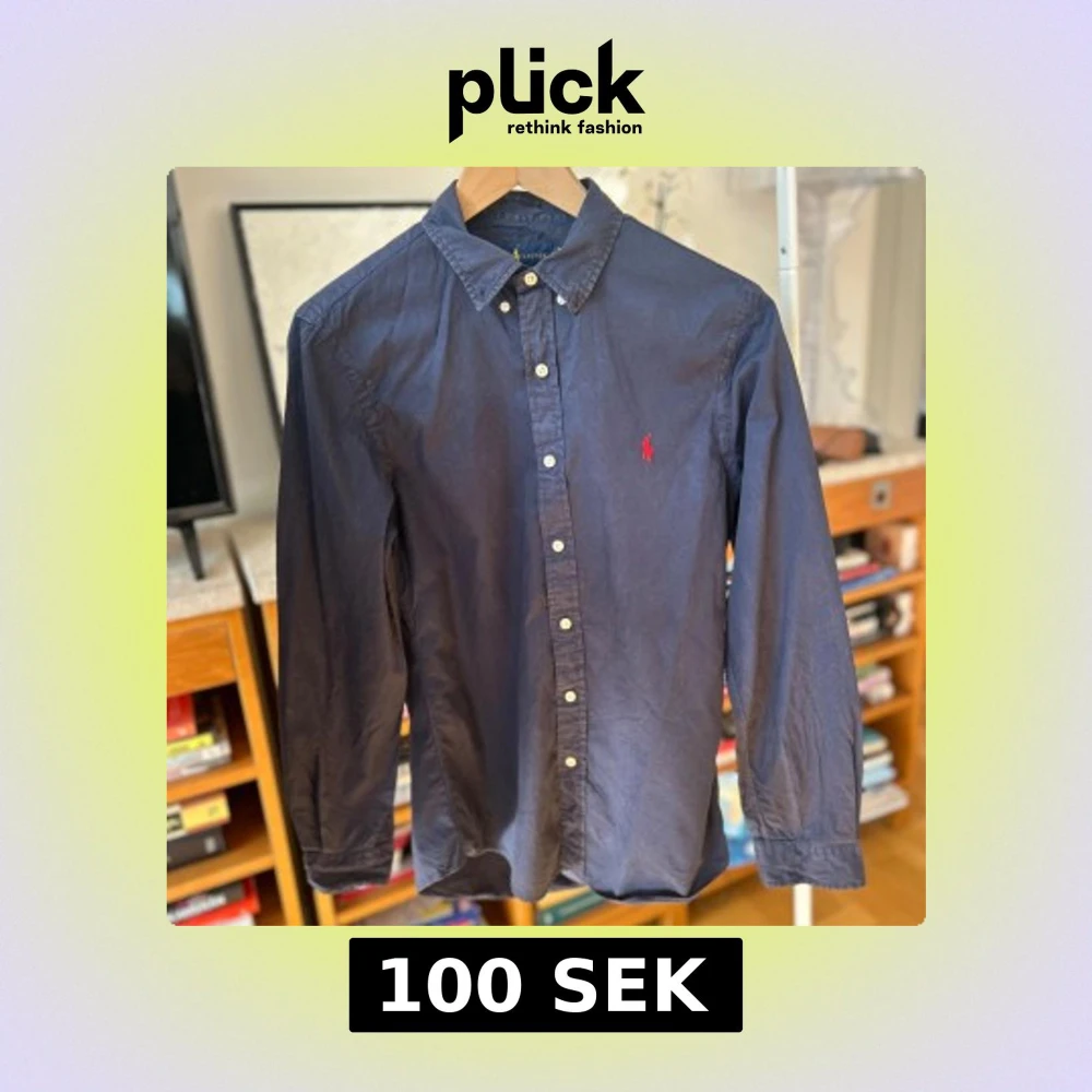 Säljer en stilren mörkblå skjorta från Ralph Lauren i slim fit. Skjortan har långa ärmar och knappar framtill. Den är tillverkad i bomull och har en broderad logotyp på bröstet. Perfekt för en klassisk look! Storlek 170 och motsvarar typ XS herr eller S dam.