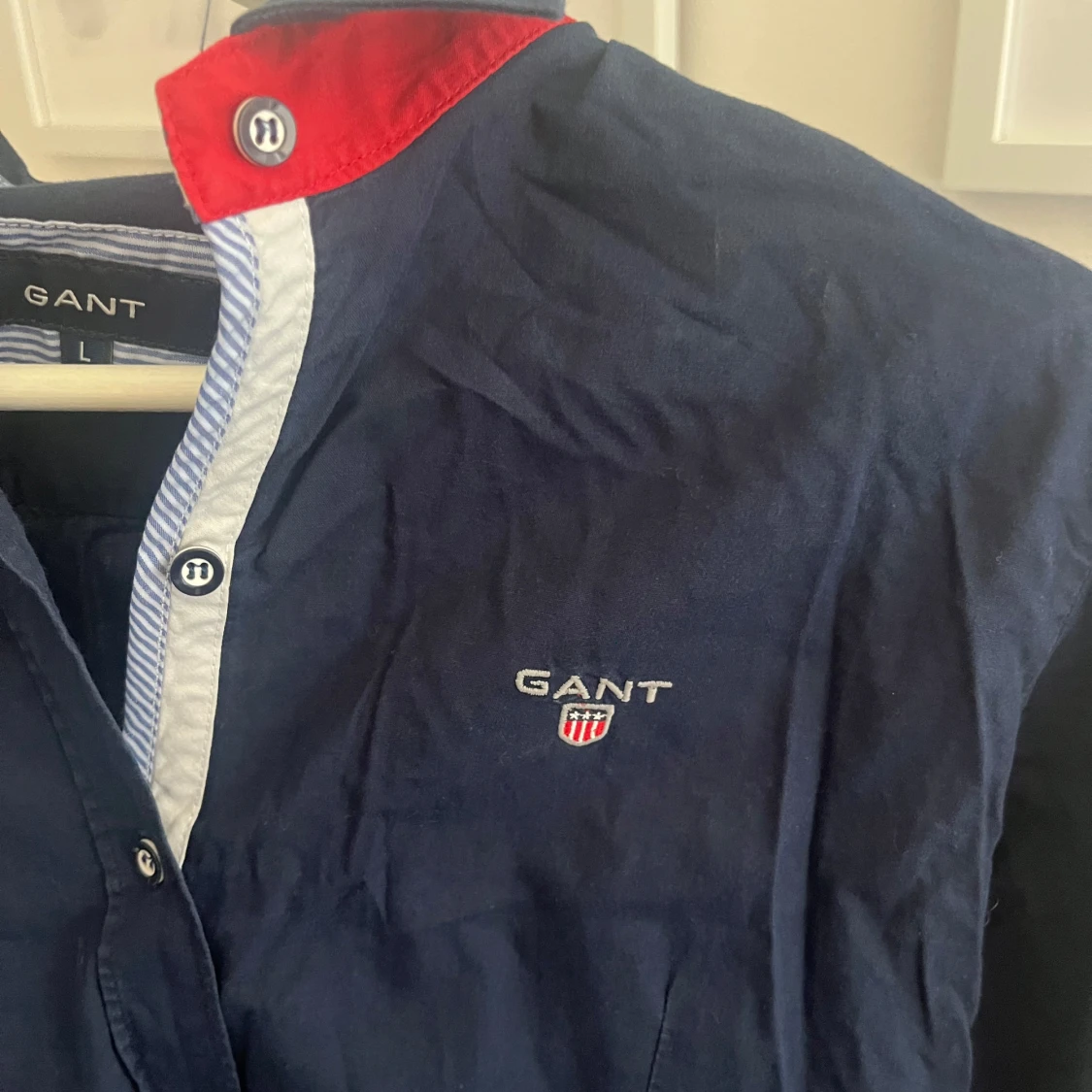 Snygg och stilren mörkblå skjorta från GANT ❤️🔥95% bomull. Barnstorlek L, passar mig som vanligtvis har XS. Använd någon gång, jättefint skick. Skriv meddelande vid frågor/fler bilder 💋